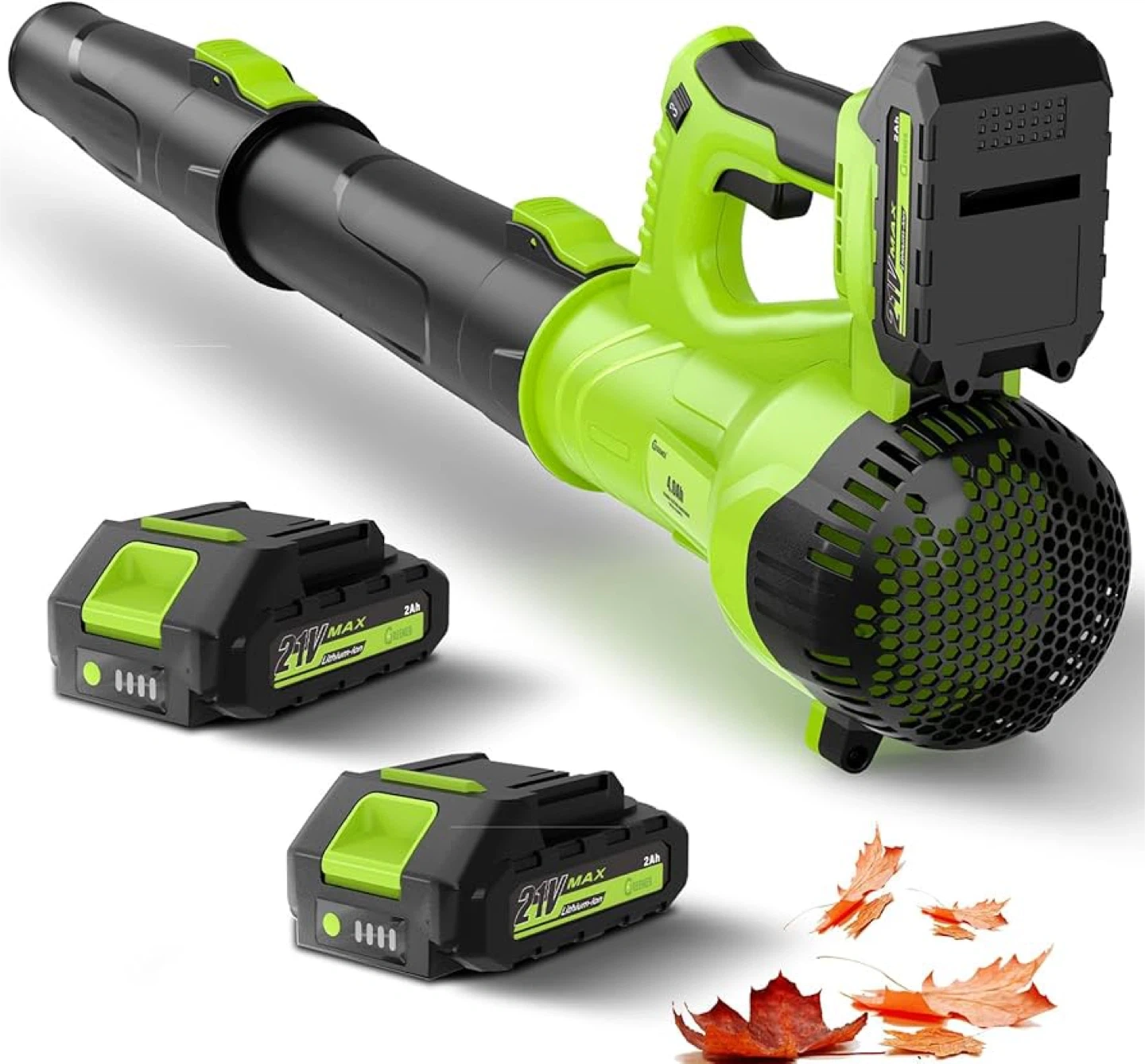 38Selling a brand new Greener leaf blower It comes with two 21V & 2000MAH Li-ion batteries for a total runtime of 20 minutes at high speed. It also features 6 variation speeds and a fast 1-hour full charge. Included: - Leaf blower - 2 High Capacity Batteries - Blower tube - Extension nozzle - Battery charger Box included!