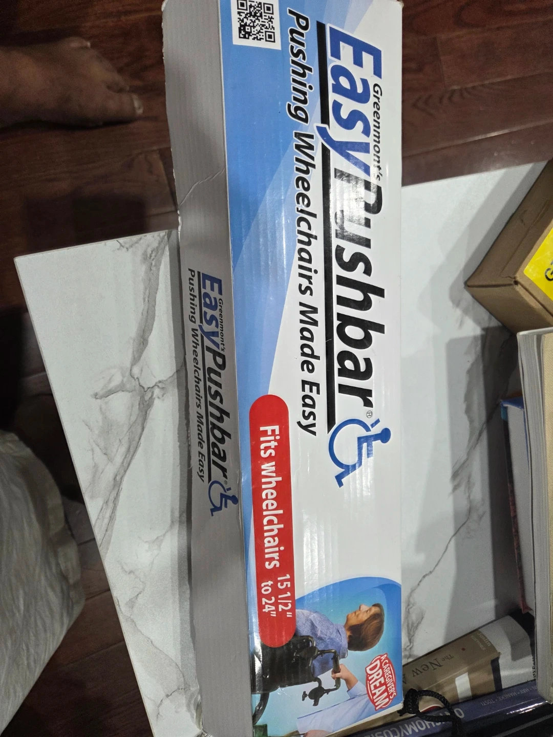 10I'm selling a Greenmont Easy Push Bar, designed to make pushing wheelchairs easier. It fits wheelchairs from 15 1/2" to 24". Comes with the original box!