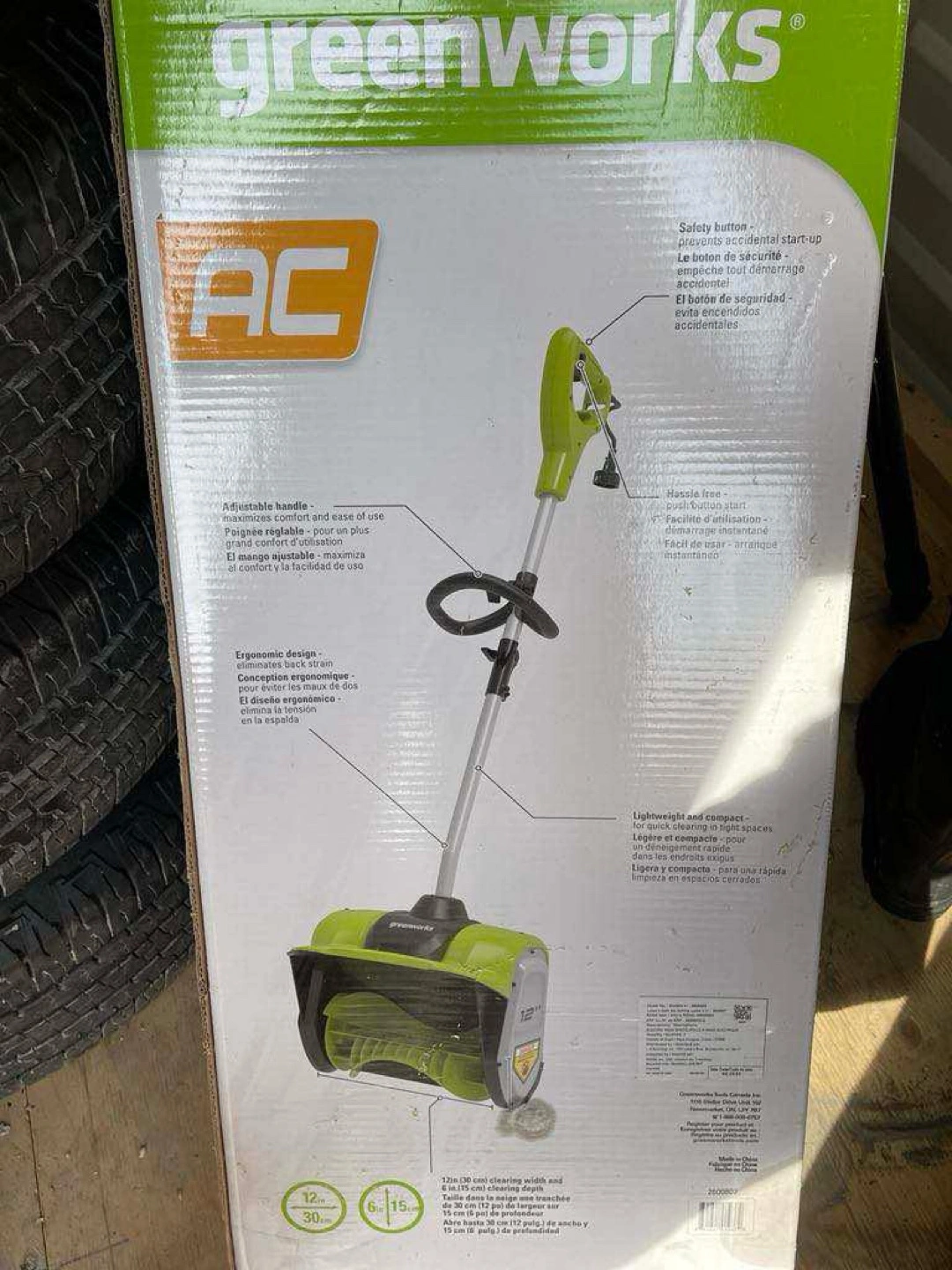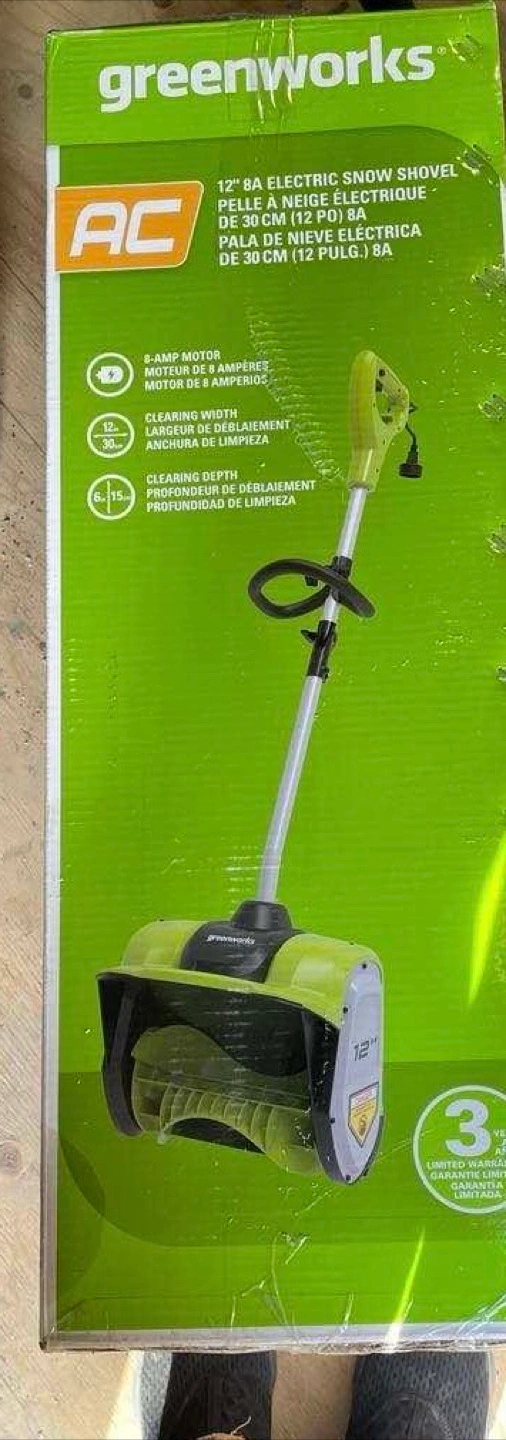 Corded snow shovel. Lightweight and compact. 12-inch clearing width. Adjustable handle. Ergonomic design. Used only once. Pickup near Costco Regent.