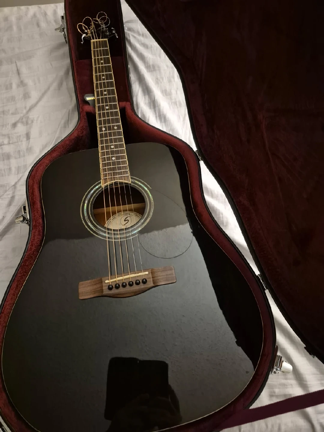 60Selling a Greg Bennett Design acoustic guitar, model D-1/BK. It comes with a Profile hard case. The guitar has Grover tuners. Great for anyone looking to start playing or upgrade their current instrument