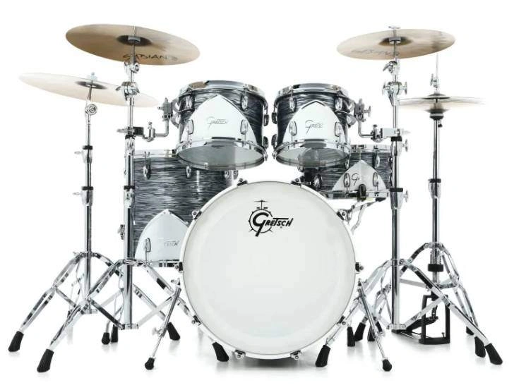 10As a tribute to the booming American automobile industry of the 1950s, Gretsch Renown 57 drum kits are decked out in a gorgeous classic car style that defined the era. On top of that, they feature an eye-catching, vintage chevron logo that will transport you back to the days of sock hops, soda fountains, and the birth of rock ’n’ roll. Renown features the classic 7-ply Gretsch formula maple shells, with 30-degree bearing edges and exclusive “Silver Sealer” interiors. Renown comes with Gretsch's player-friendly “302” hoop – the same hoop used on Gretsch's Brooklyn and Broadkaster series drums. Gretsch 302 hoops produce the desirable focused sound like that of a die cast hoop, but are lighter in weight and less rigid, allowing the drum to better “breath” and achieve maximum resonance. Renown delivers the traditional Gretsch sound with an incredible open, harmonic tone that supplies the versatility needed to meet the demands of the hardest working drummers. Renown looks as good as ever, with numerous features that are traditionally Gretsch, including a lightweight, off-the-shell mounting system, distinctively styled lugs, brackets, memory locks and bass drum spurs and the classic “T-Wing” screw. INCLUDES: 5 PCE DRUMS, 3 CYMBAL STANDS WITH GENUINE GRETSCH TOM MOUNTS, HI-HAT STAND, KICK PEDAL AND FULL SET OF SOFT WOOL LINED CASES FOR ALL DRUMS & HARWARE BAG. NOT INCLUDED: ALL CYMBALS, THRONE