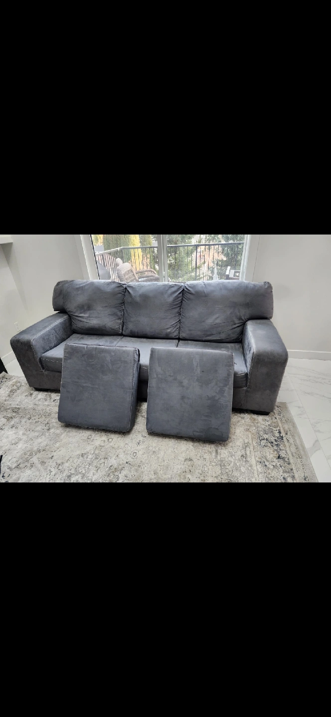 Selling a comfy grey 3-seater sofa. It comes with two cushions as shown in the pictures. It's in good condition and ready for a new home!