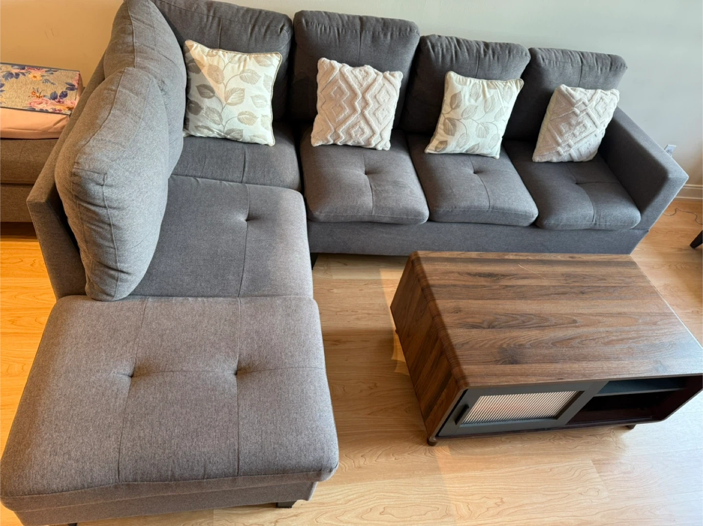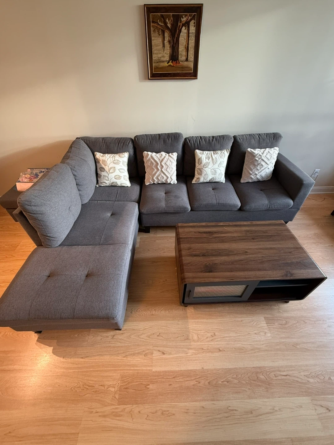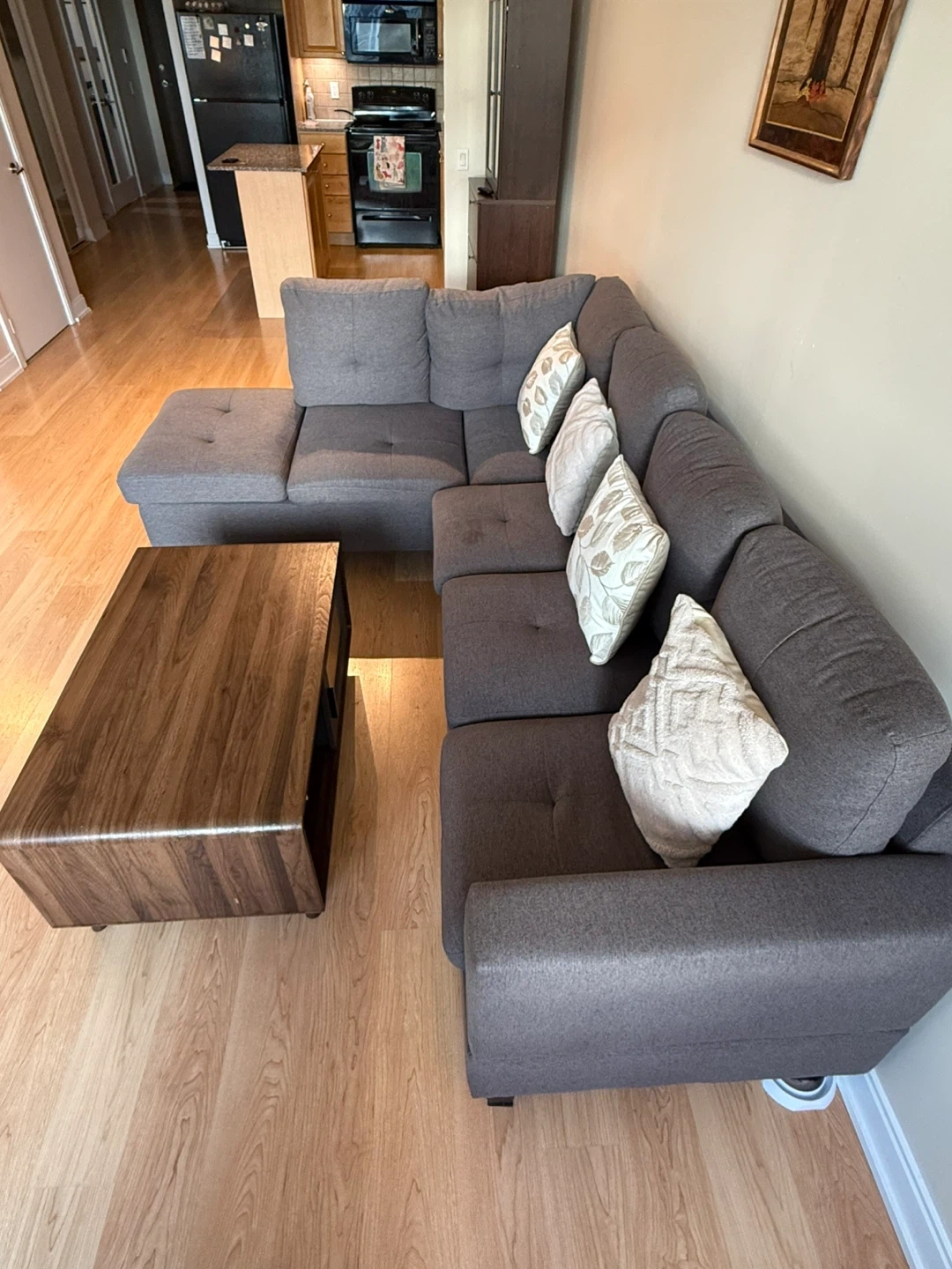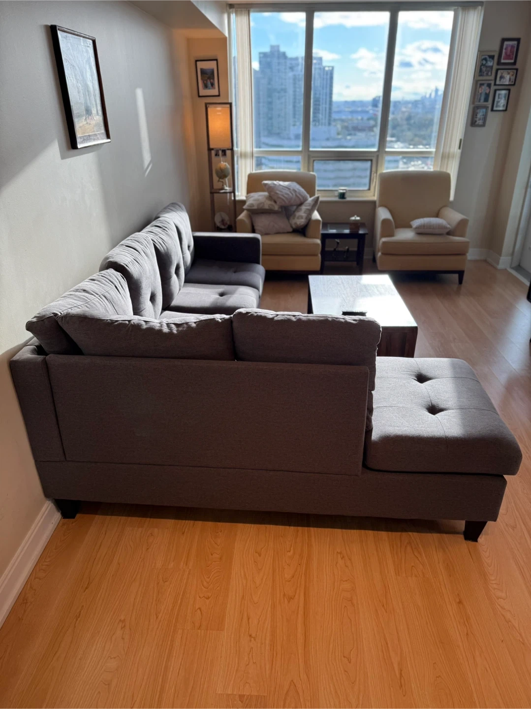 81Selling an 8-month-old L-shaped couch in great condition. Seats up to 5 people comfortably. Purchased brand new. The couch comes in two detachable sections, making it easy to move. The L-shape is reversible (requires disassembly to switch sides).
