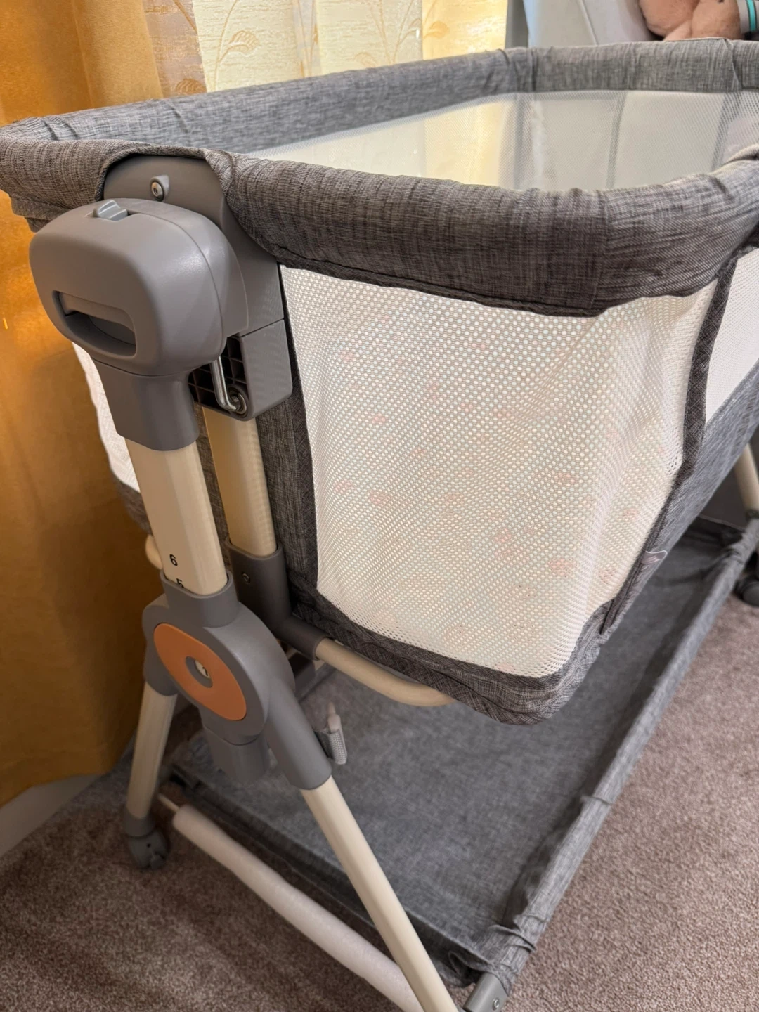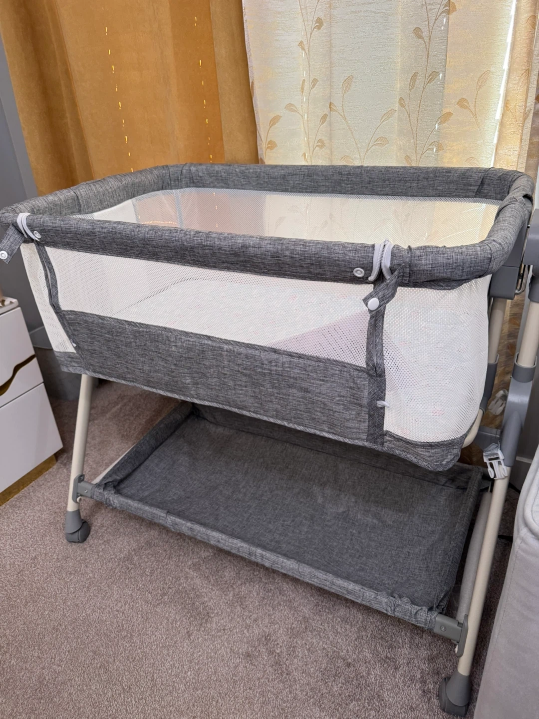 5Selling a gently used baby bassinet in great condition! It features a grey frame and mesh sides, with a cute patterned mattress pad. Perfect for keeping your little one close by during those early months.