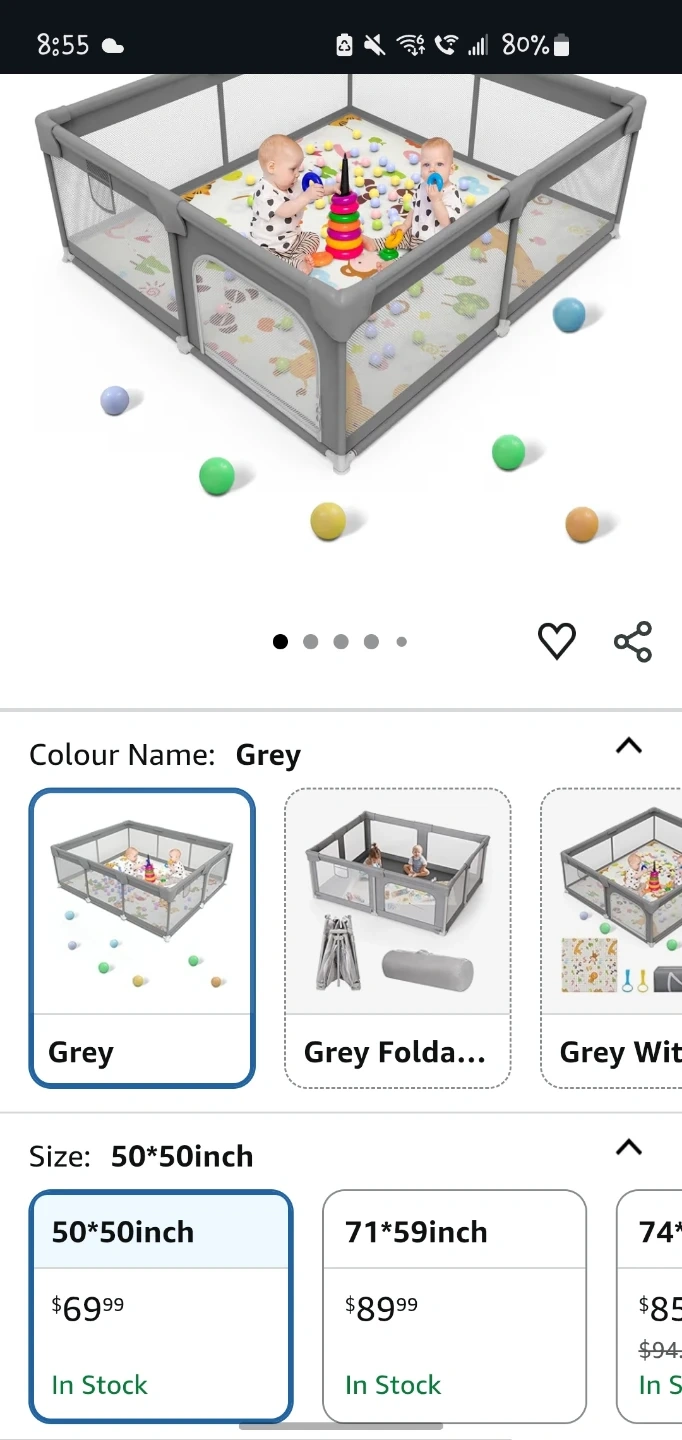 Selling a grey baby playpen, perfect for keeping your little ones safe and entertained! It's 50x50 inches, providing ample space for play. Originally bought for $69.99