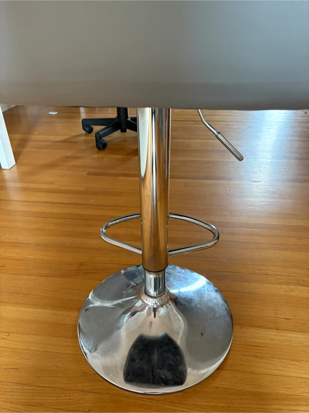 81Here's a grey bar stool that would look great in any kitchen or bar area! It features a chrome base and a comfortable, padded seat. It's in great condition and ready for a new home. Pick up at Morley trail NW