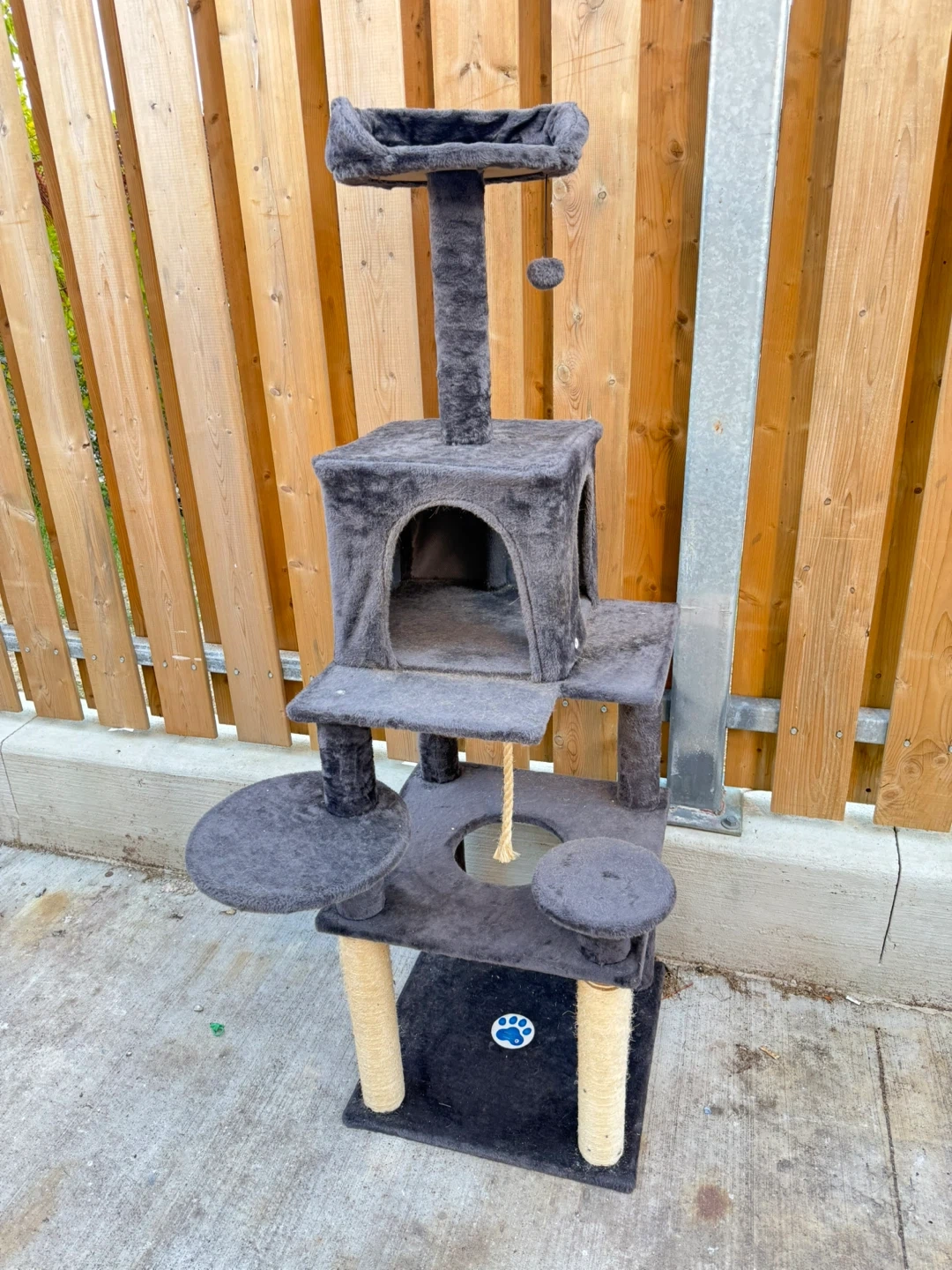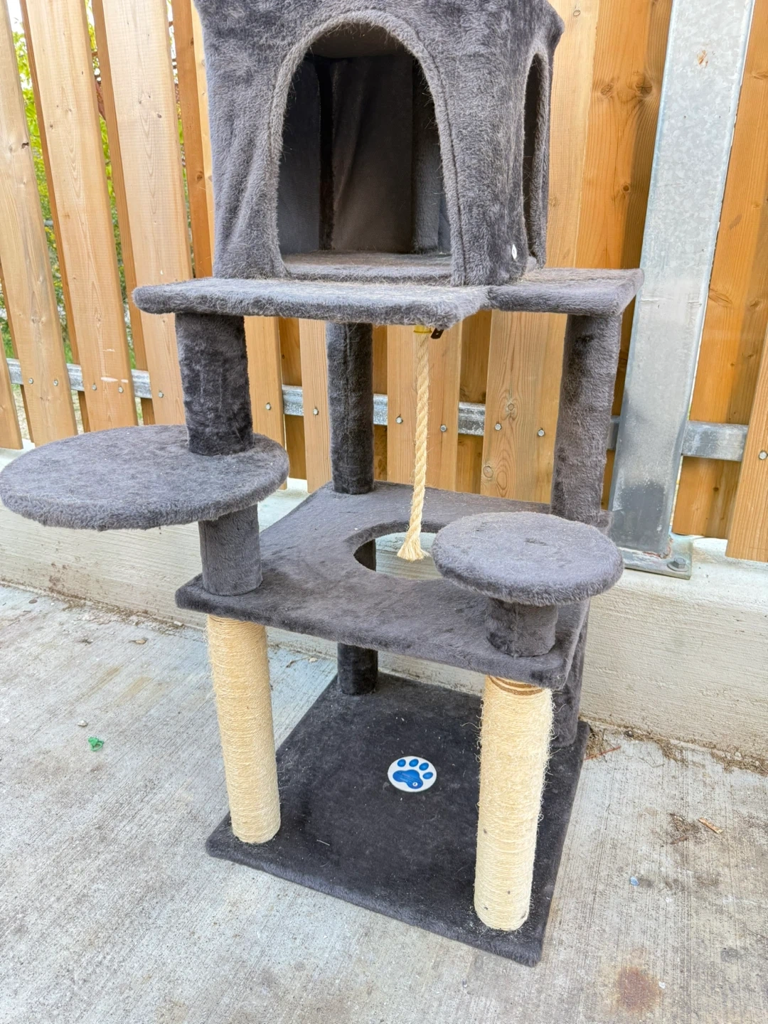 10Selling a cat tree in great condition! It features multiple levels, a cozy condo, and scratching posts wrapped in sisal rope. Your kitty will love climbing, playing, and napping on this fun and functional piece of cat furniture