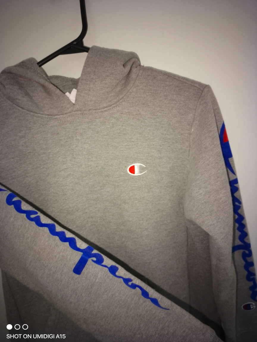 53Grey Champion hoodie. Size medium kids or xs in womens Features Champion logo on chest and sleeves. Good condition.