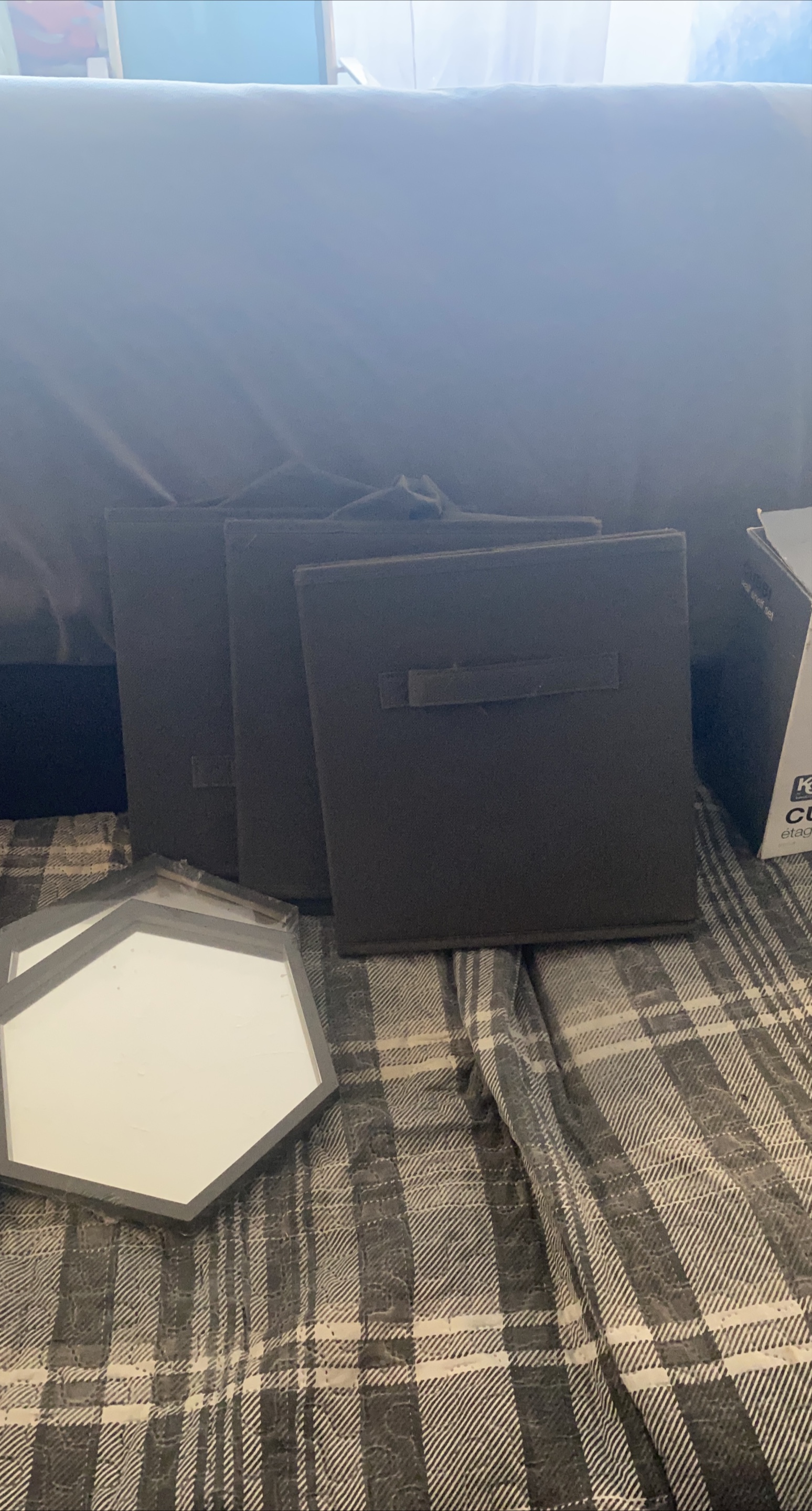 Selling a set of three grey collapsible storage cubes. They're in great shape and perfect for organizing your space. Easy to fold up and store when not in use!