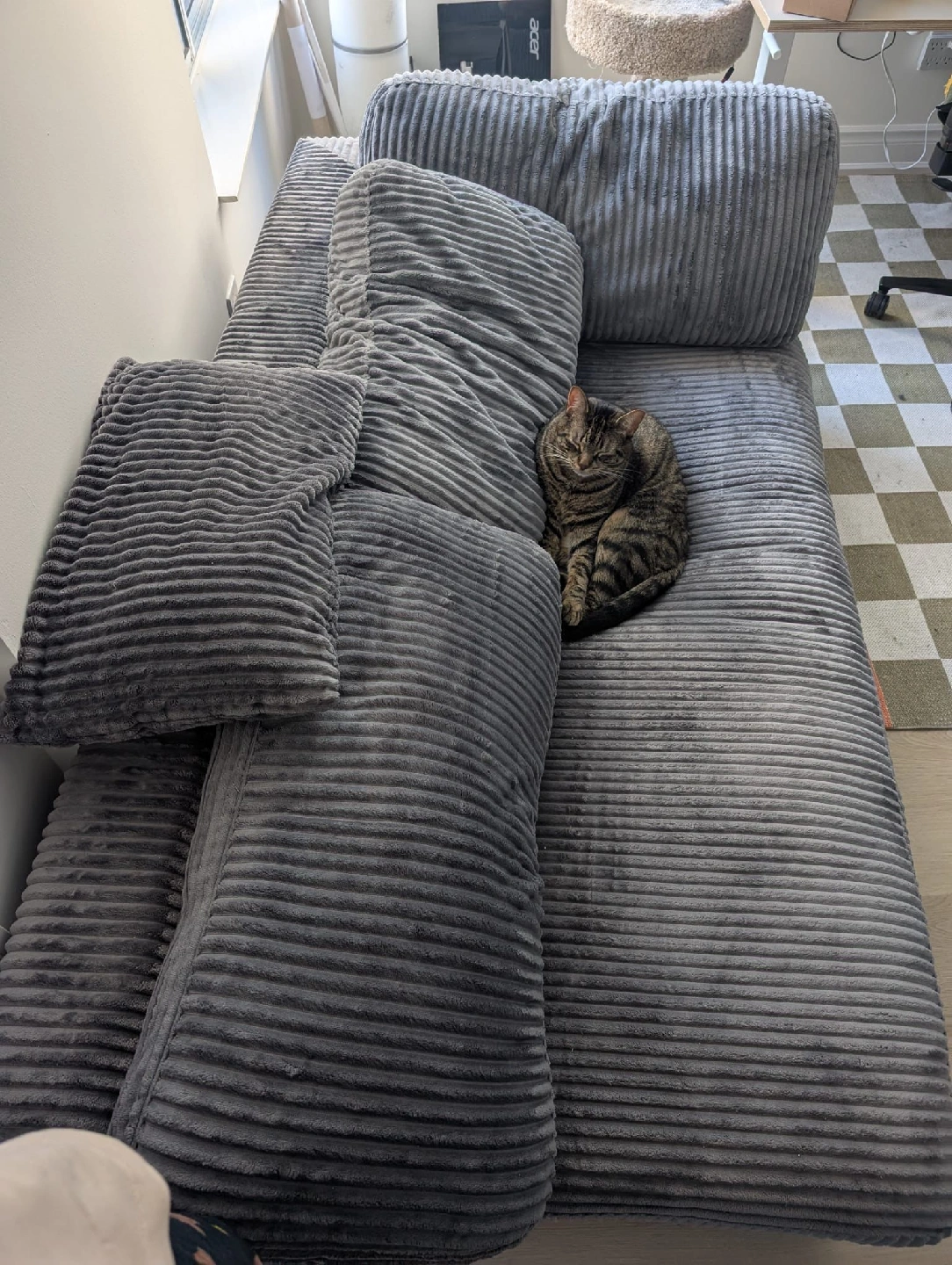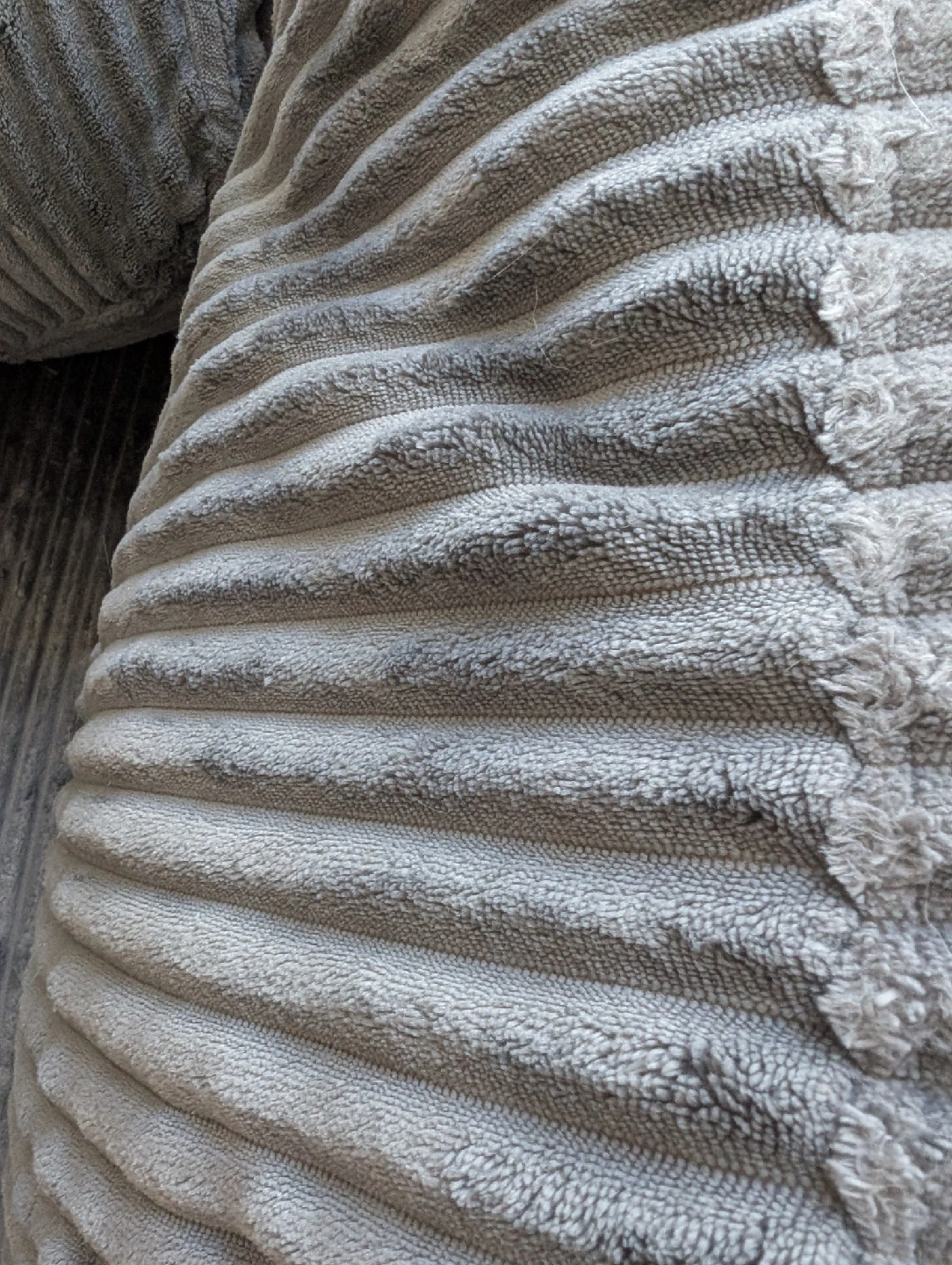 76Selling a comfy grey corduroy sofa! It comes with a few matching pillows, perfect for lounging. The material is soft and cozy, great for relaxing after a long day. It's in good condition and ready for a new home Originally paid 780 at Wayfair https://share.google/8aBKeFadsXxlWgpqr Sofa is mint and clean one year of use pet friendly covers can be removed for washing pick up near finch station