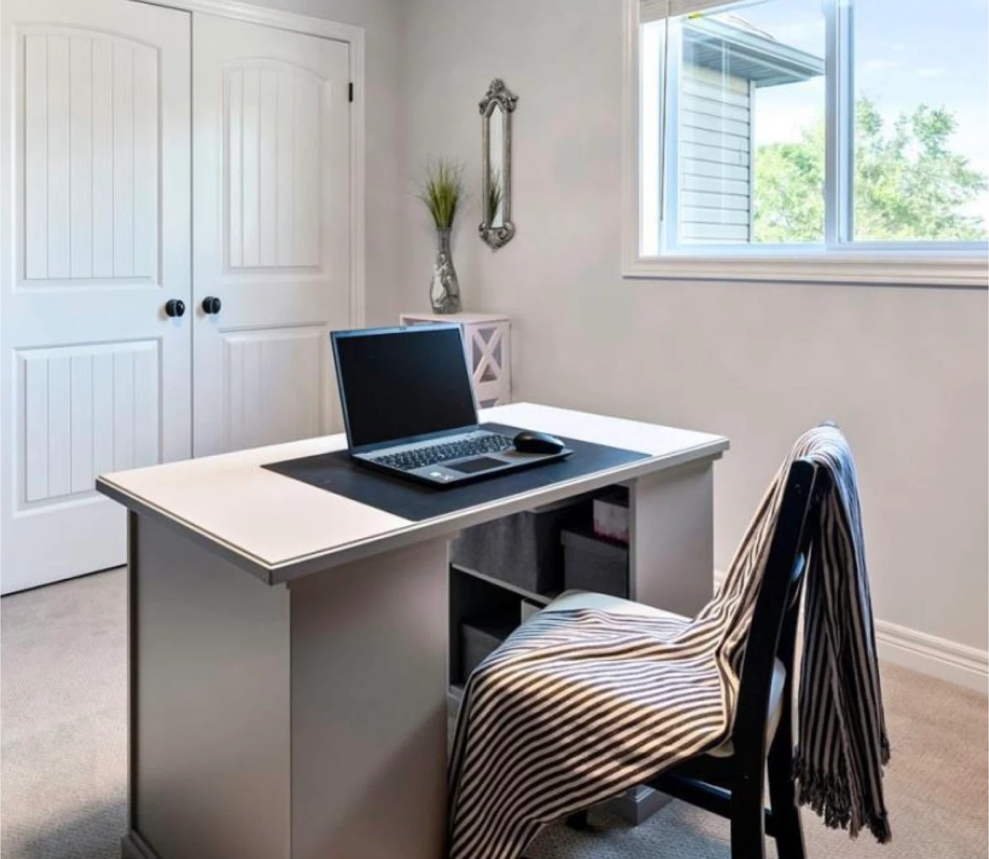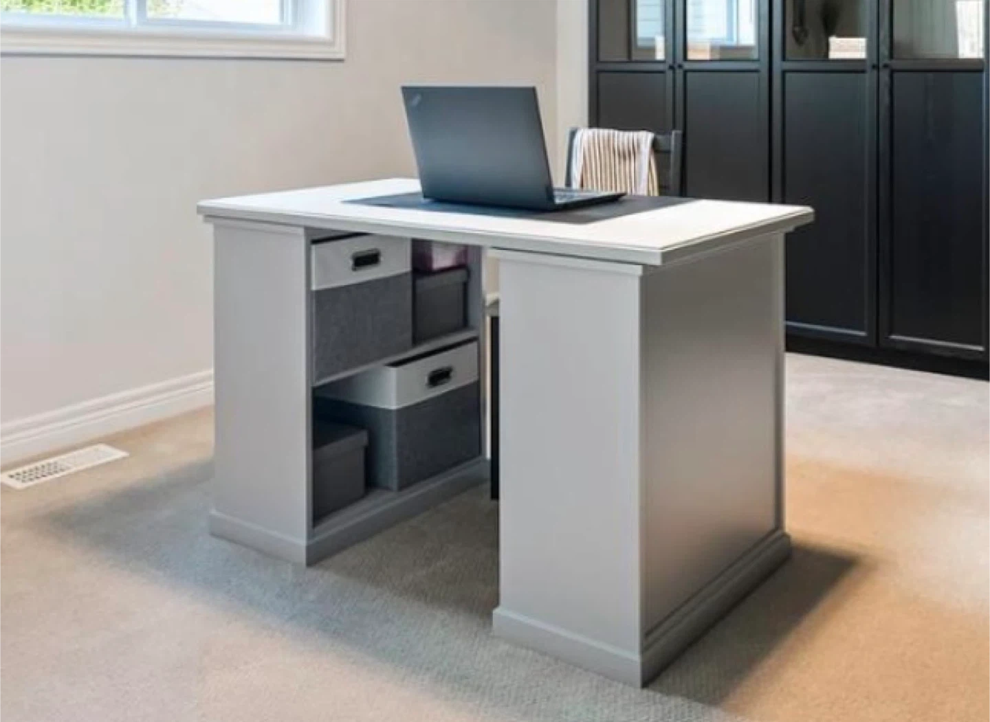 16Selling a grey solid wooden desk with built-in storage. It's in good condition and perfect for a home office or study space. The desk features shelves for organizing your supplies and keeping your workspace tidy. A great addition to any room!