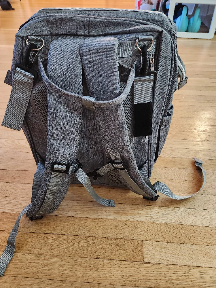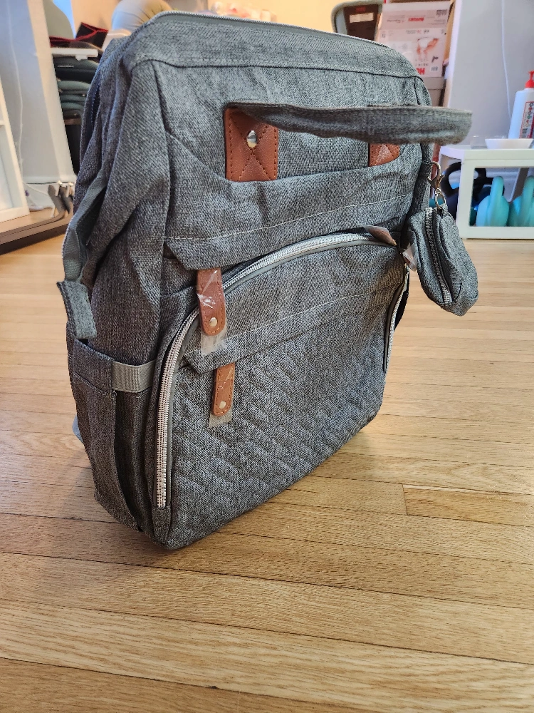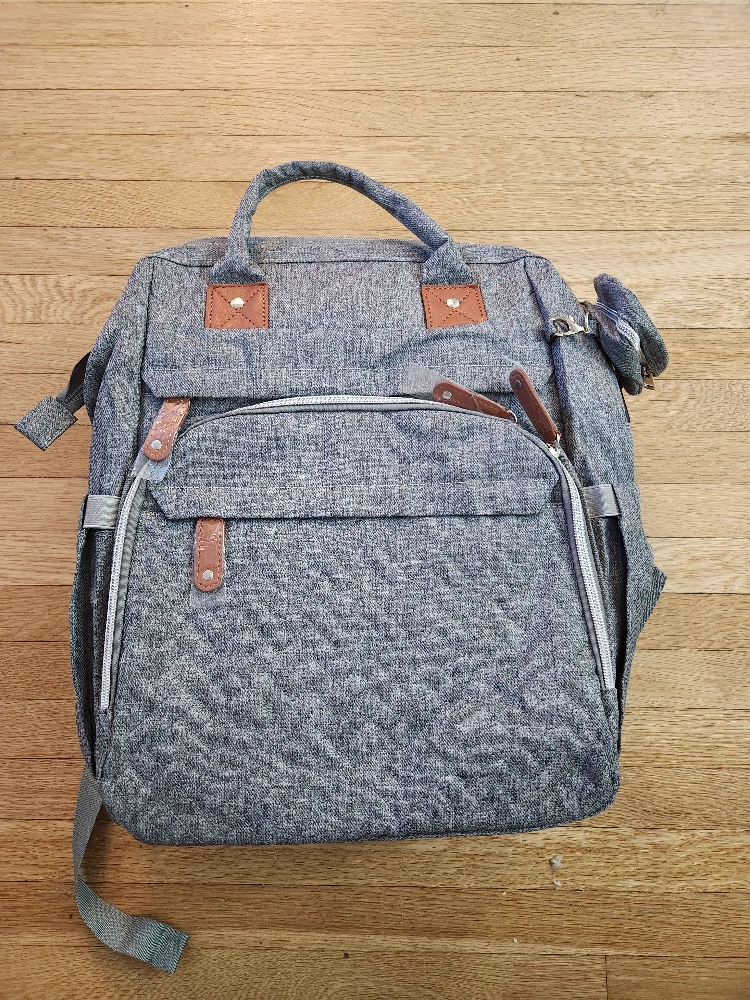 New, unused diaper baby bag. Got a duplicate from my baby shower, trying to give this one away. Below description taken from Walmart listing where also sold. I believe this one was from Amazon Hands-free diaper bag is made of durable, waterproof fabric with sturdy zippers and stitching. With 18 pockets, 2 main compartments, and a spacious design, you'll have all your baby boys / girls gears organized and easily accessible. The cushioned straps make carrying the bag comfortable, and it's easy to clean with a damp cloth. Say goodbye to the hassle of a cluttered diaper bag, and embrace the stylish, modern, and functional design of the BabbleRoo Diaper Backpack. - Color: Light Gray - Material: Polyester - Size: 8 x 16.5 x 12 in - What You Will Get: A washable changing pad, size: 23 x 14.5", A detachable pacifier pocket (fit for 2 pacifiers), Insulated bottle holders x 5, Built-in buggy clips x 2, Side pockets for wipes or bottles, Front pockets with keychain, Padded laptop sleeve/changing pad pocket - Made of tear-proof, waterproof fabric and strong zippers - Reinforced straps & padded back panel ensure comfort while carrying - Cushioned shoulder straps, top handle and stroller clips for versatility in carrying as a backpack, handbag, or attaching to a stroller - Multiple pockets and easy-glide zippers for one-handed access