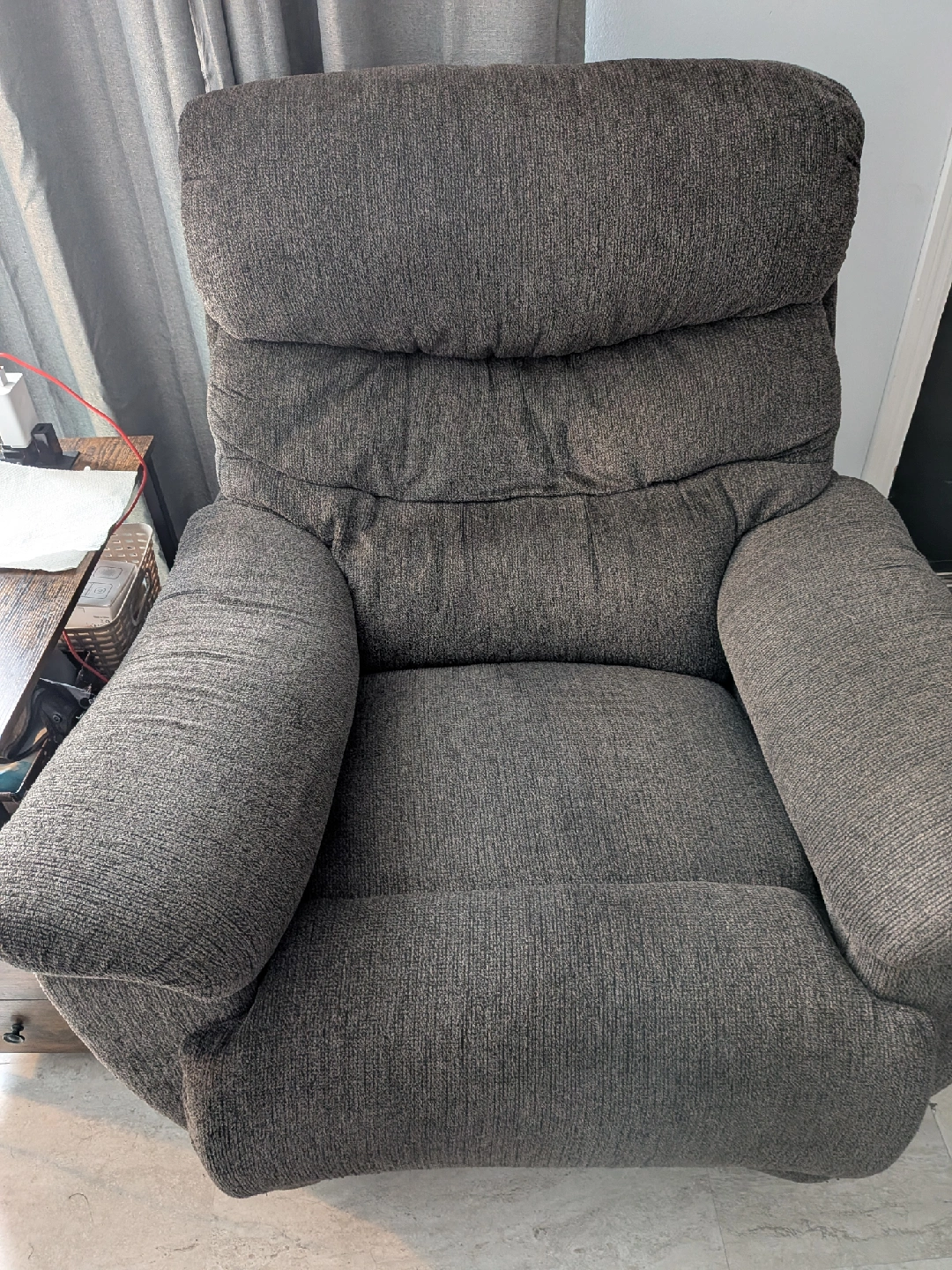 Dark Grey fabric manual recliner Very, very comfortable Bought as sectional so need this gone $125