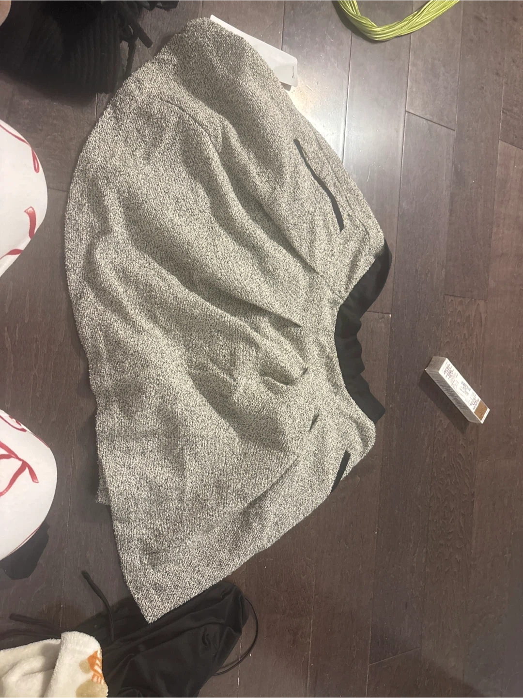Selling a pair of grey knit shorts. They feature a comfortable knit texture and a black waistband. Great for casual wear!