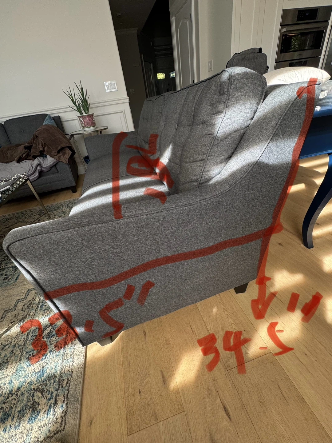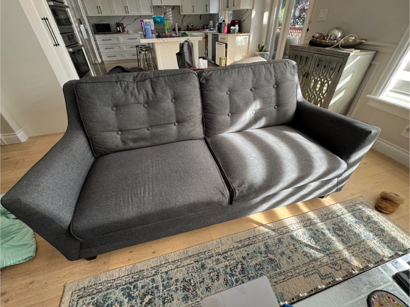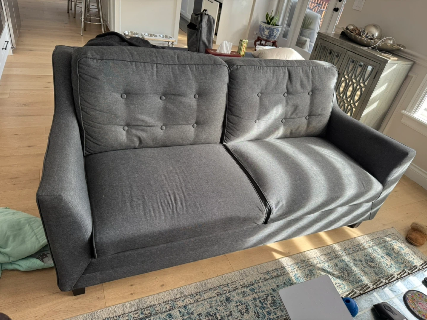 Best price for two sofas! Selling a comfy grey loveseat and sofa! It's in great shape and measures about 57 inches wide. Perfect for a small space or apartment