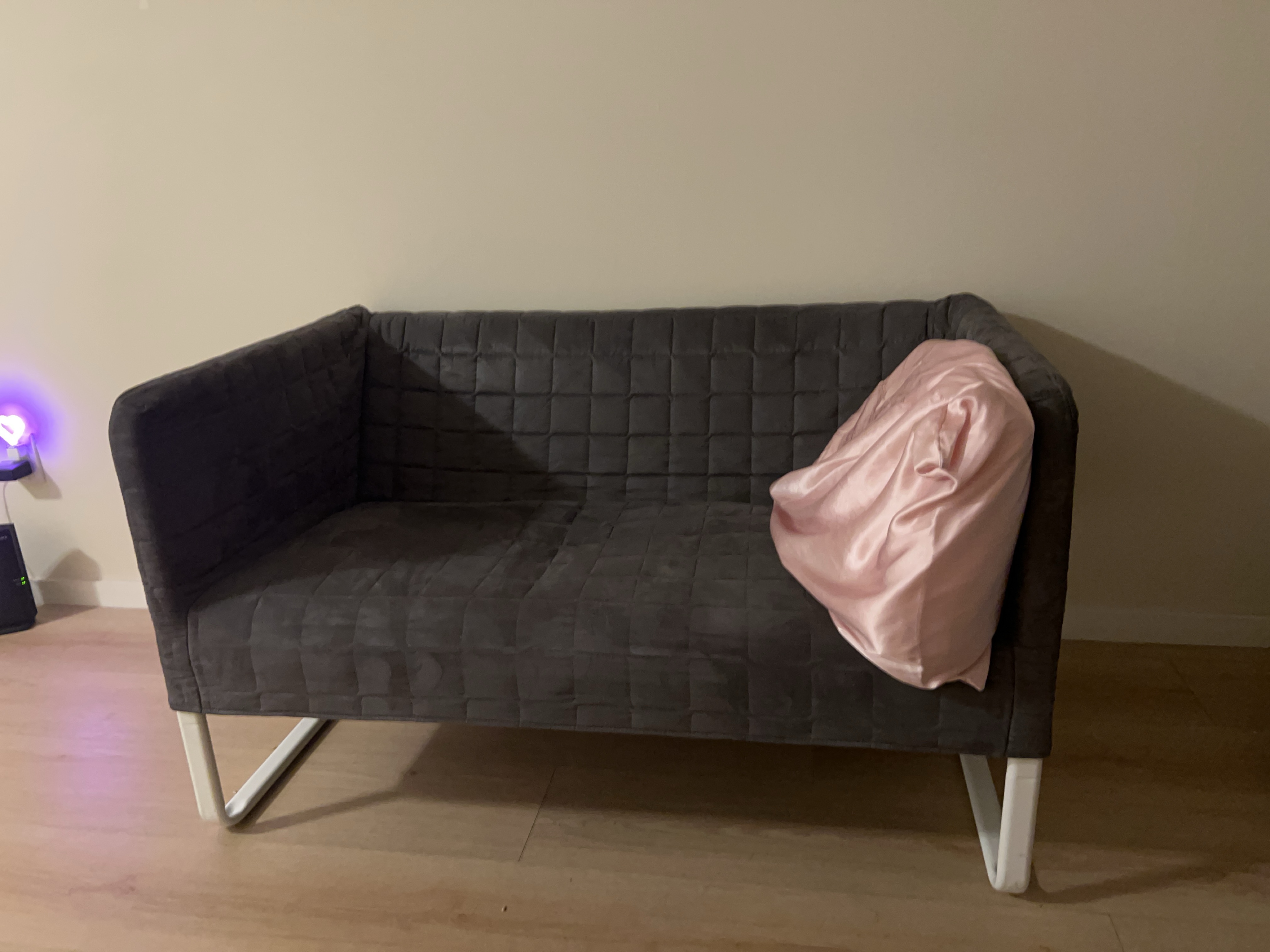 10Selling a lovely grey loveseat sofa! It's in great condition and would be a perfect addition to any living room or small space. The sofa features a stylish quilted design and sturdy white legs. It's super comfy and ready for a new home!