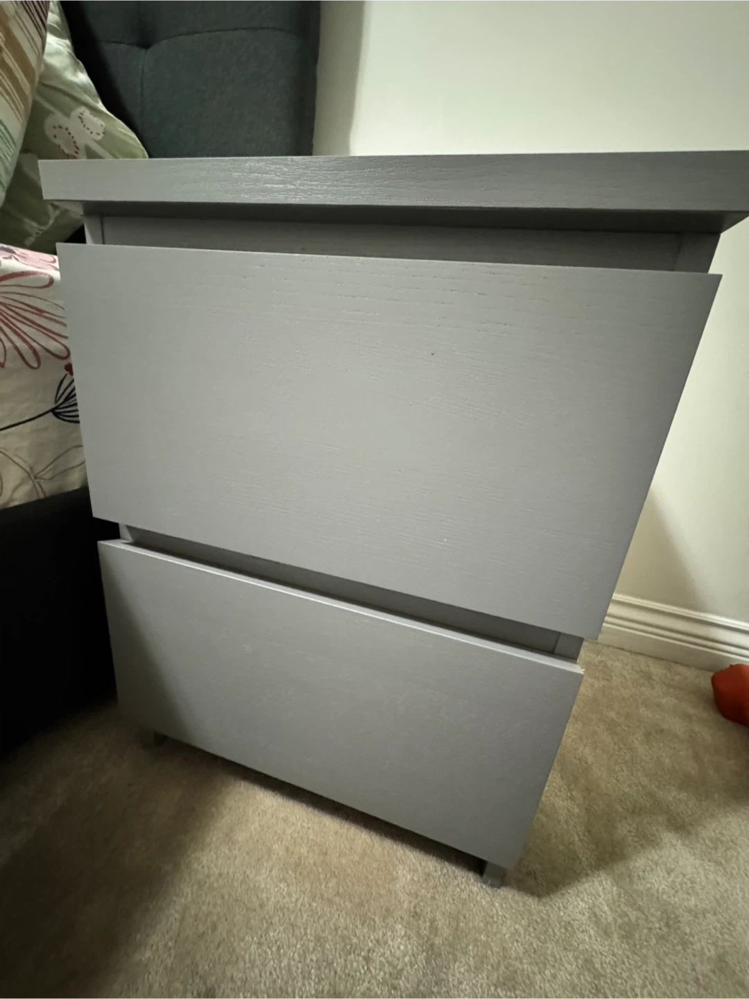 Grey Nightstand with Two Drawers - 2 set