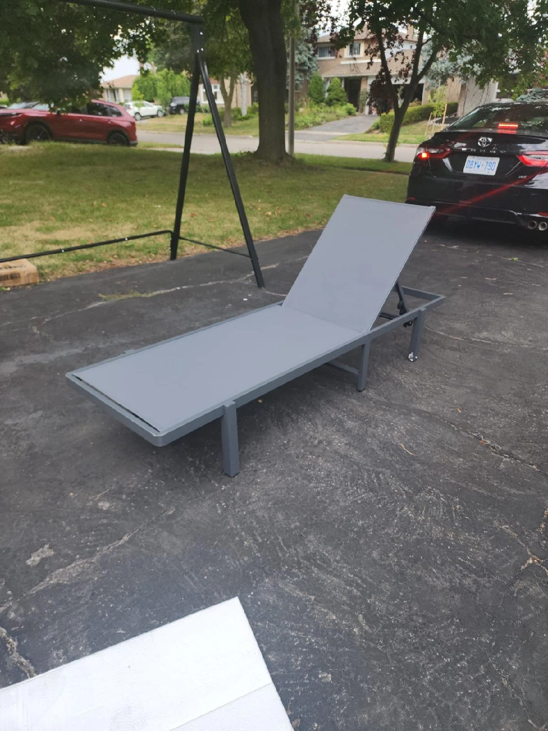 Selling a grey outdoor lounger. It's in good condition and ready for your backyard or patio. Perfect for relaxing on those warm days