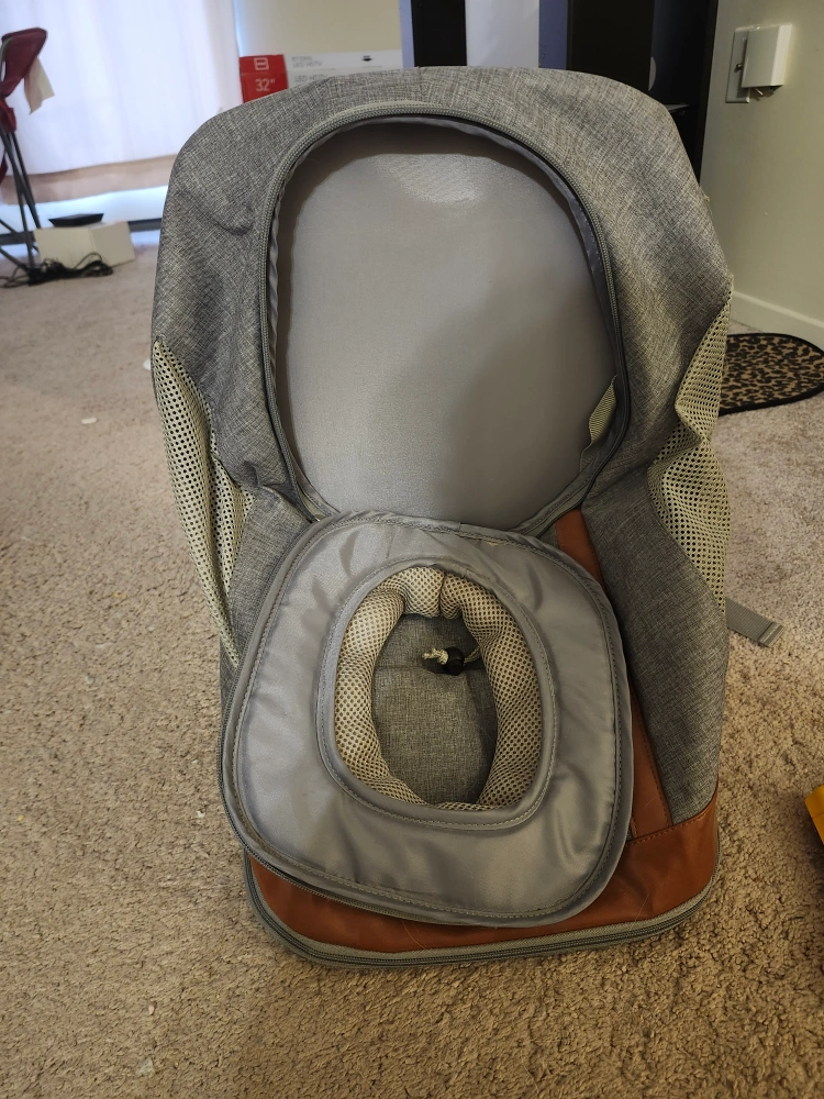 40Selling a pet carrier backpack in a neutral grey colour! It looks like it's in great shape and ready for your furry friend's adventures around town or vet visits