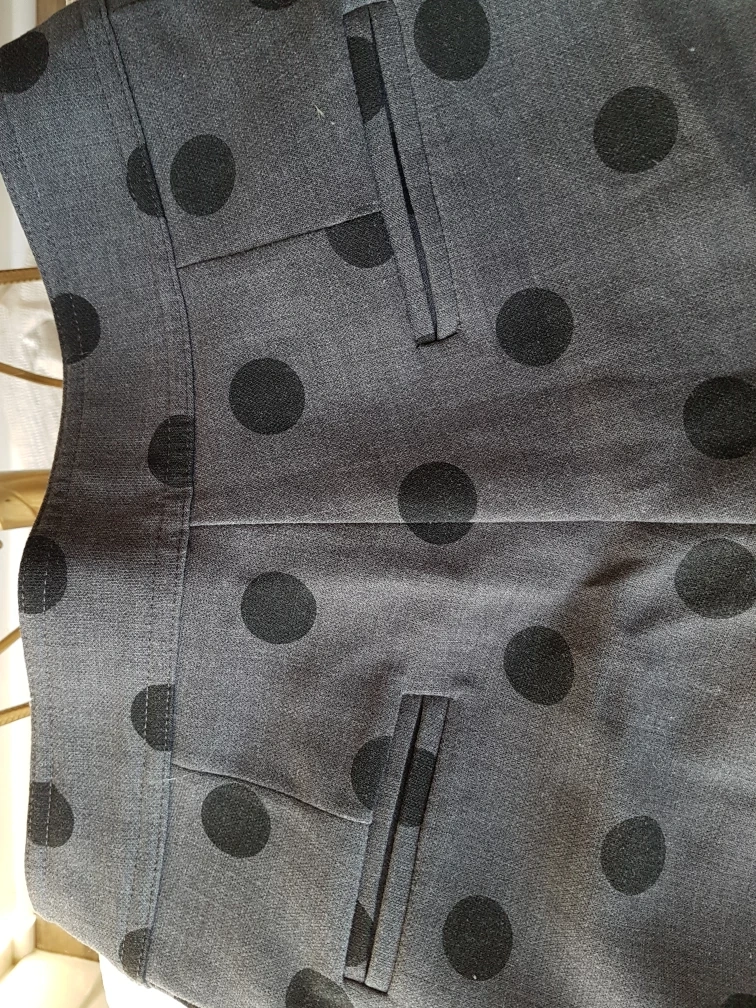 Women's grey pants. Features black polka dots. Zipper and hook closure. Two pockets. Excellent condition. Please also check out my other listings on this account. This is a no pet/ smoke home. Pick Up Cochrane, Alberta.