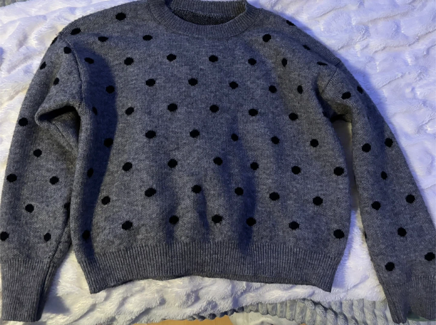 Selling a cozy grey sweater with black polka dots. It's in great condition!