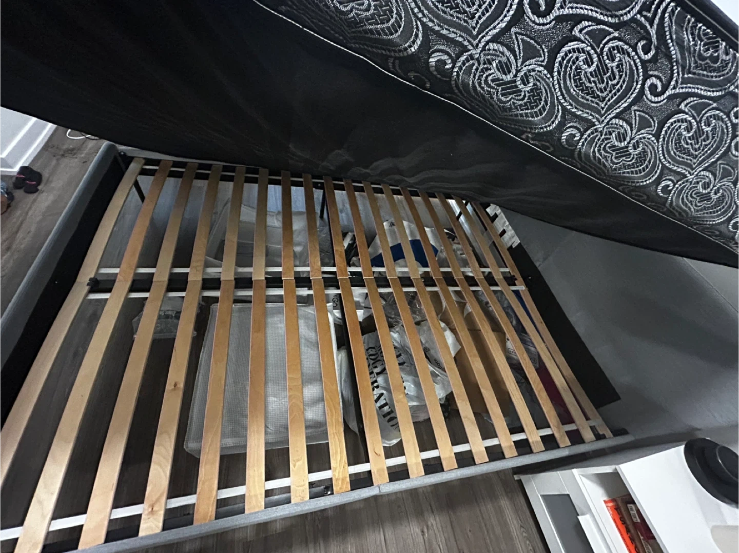 Queen size bed frame - Grey is colour Dimensions mentioned in pictures