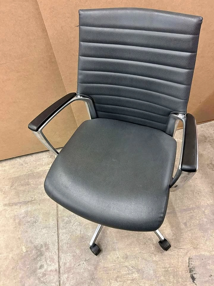 Steelcase Black Leather Height Adjustable Office Chairs