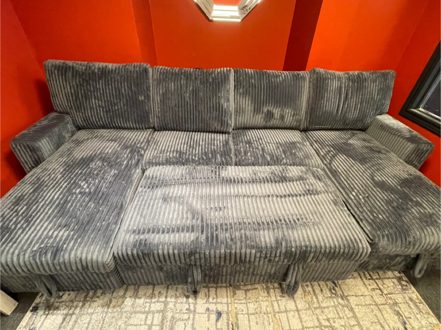 Selling a comfy grey sectional sofa! It's in great shape and features handy storage compartments. Perfect for adding extra seating and keeping your living space tidy. The sectional design allows for flexible arrangement to fit your room. It's a great addition to any home!