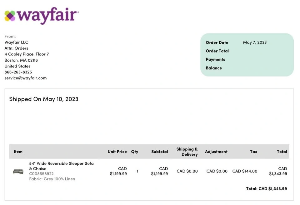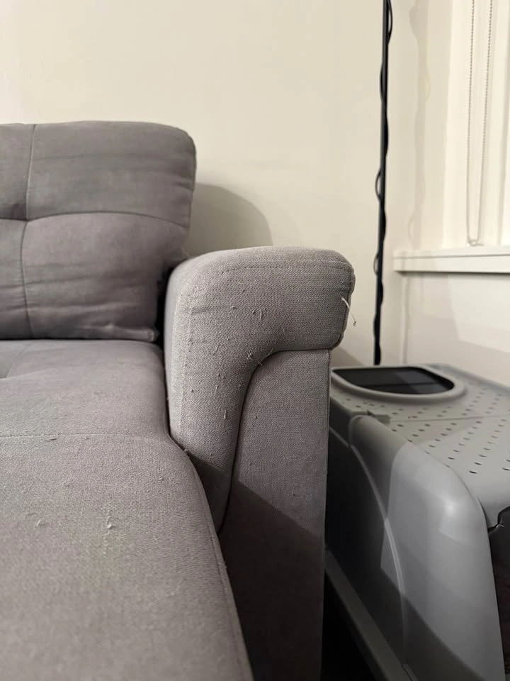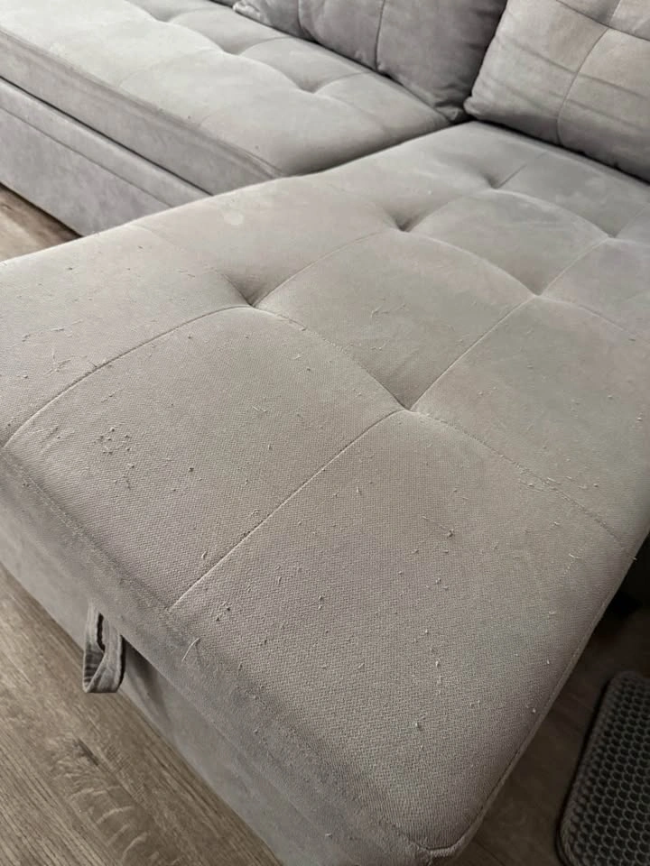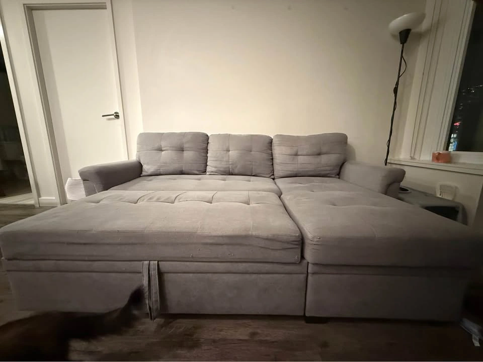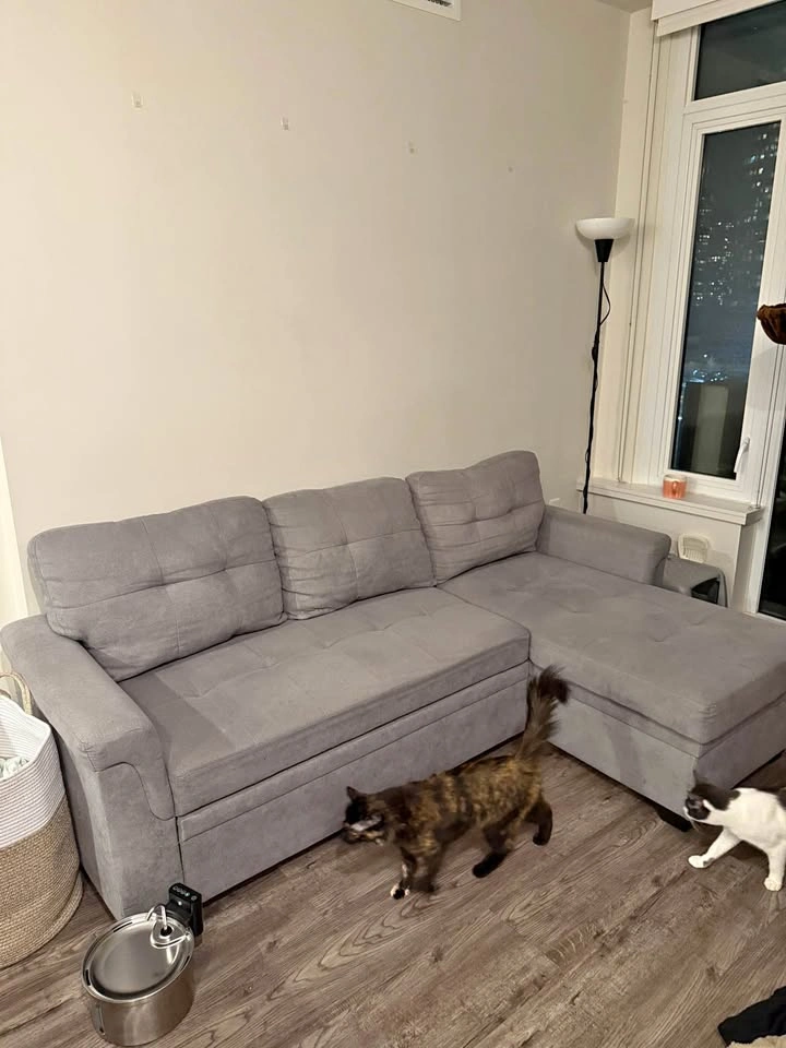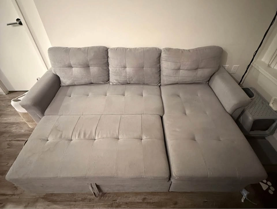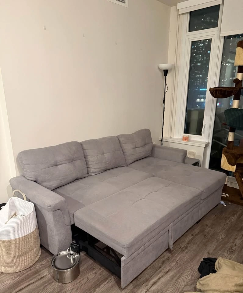 15This grey linen sectional was originally bought from Wayfair in 2023 and has been with us ever since. We have pets, but it’s a non-smoking household. It’s a 3-seater couch, has storage and it’s reversible - it opens up to become a really comfy bed that easily fits two people! It’s 84” wide, and it’s used but in good condition. It has a few light scratches on its end corners that pulled out some lines, but it can be easily fixed with a lint remover and it doesn’t impact the use of the couch! We bought it new and paid $1,343.99 after taxes (last picture). Selling because we are moving and need it gone before November 30! Pickup in Metrotown area, preferably on weekends or after 5pm on weekdays. Open to offers!