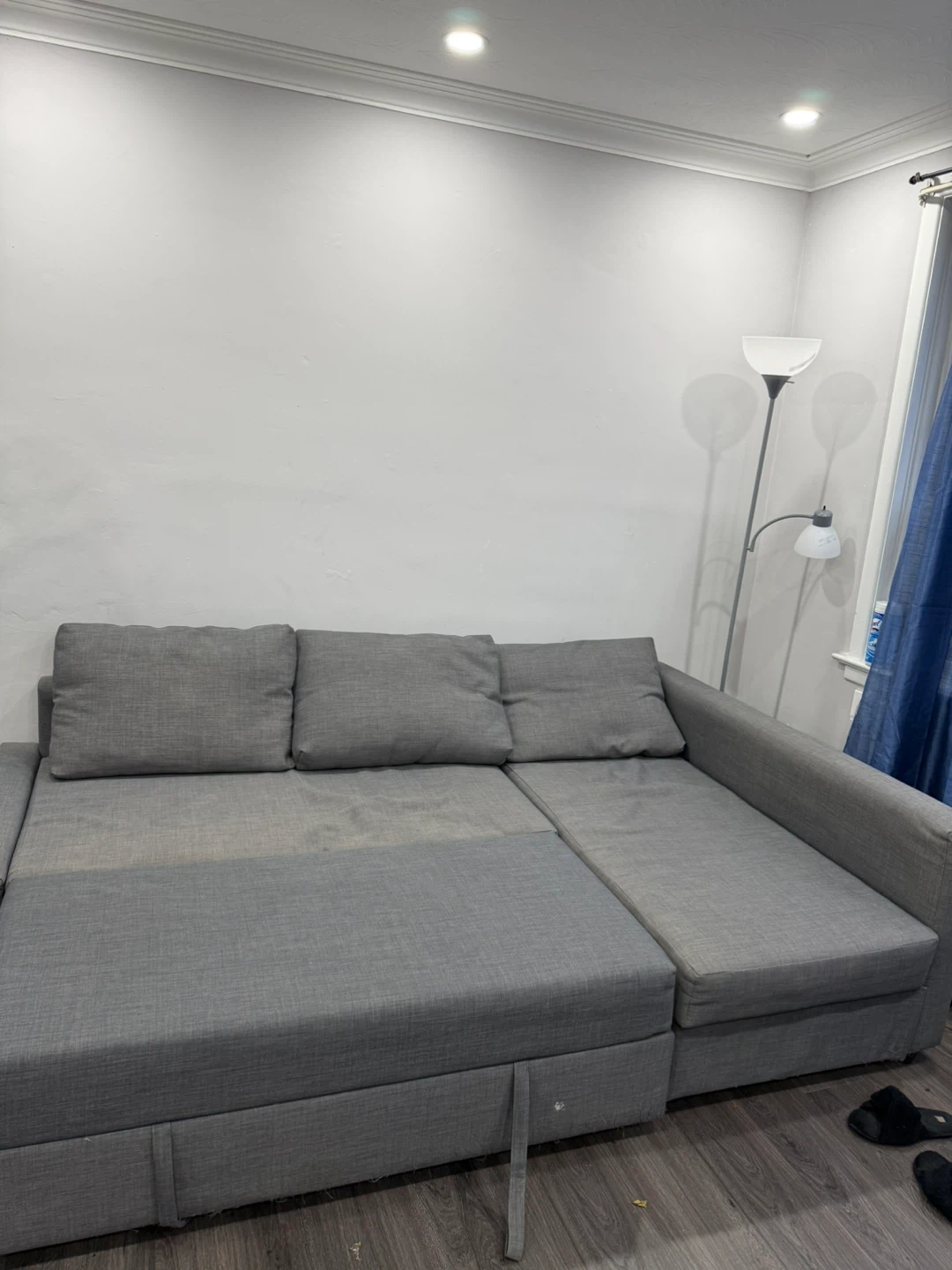 15Selling a grey sectional sofa with built-in storage! It's a great piece for maximizing space and keeping things tidy. The sofa is in good condition and comes with 3 big cushions! Comes from smoke free and pet free home! Price can be negotiated! 437-259-0209 call/ text