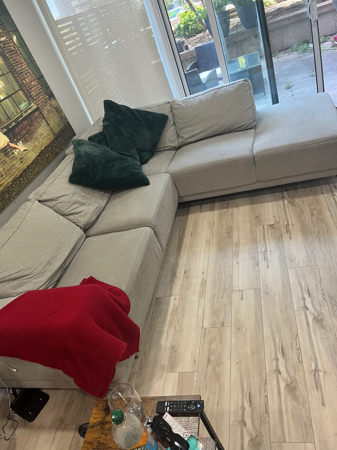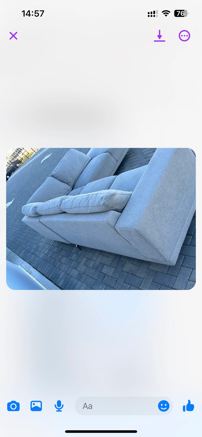 39This sofa is in good condition and has a comfortable fabric. It is a great addition to any living room. In 2 sections