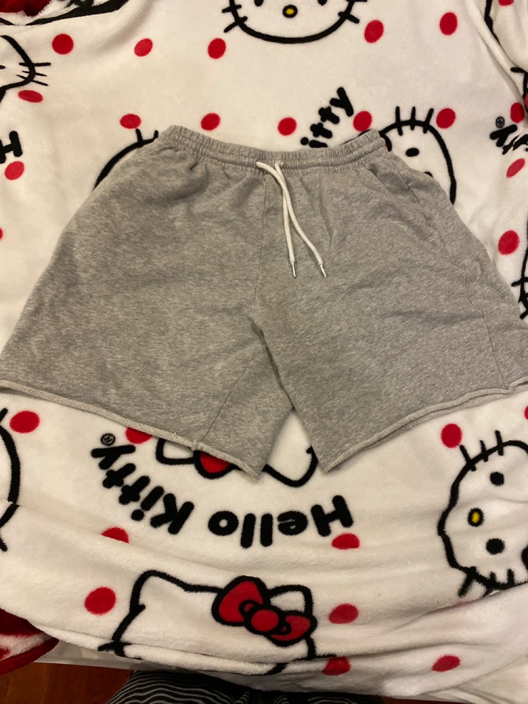 Selling a pair of grey shorts. They have a drawstring and pockets