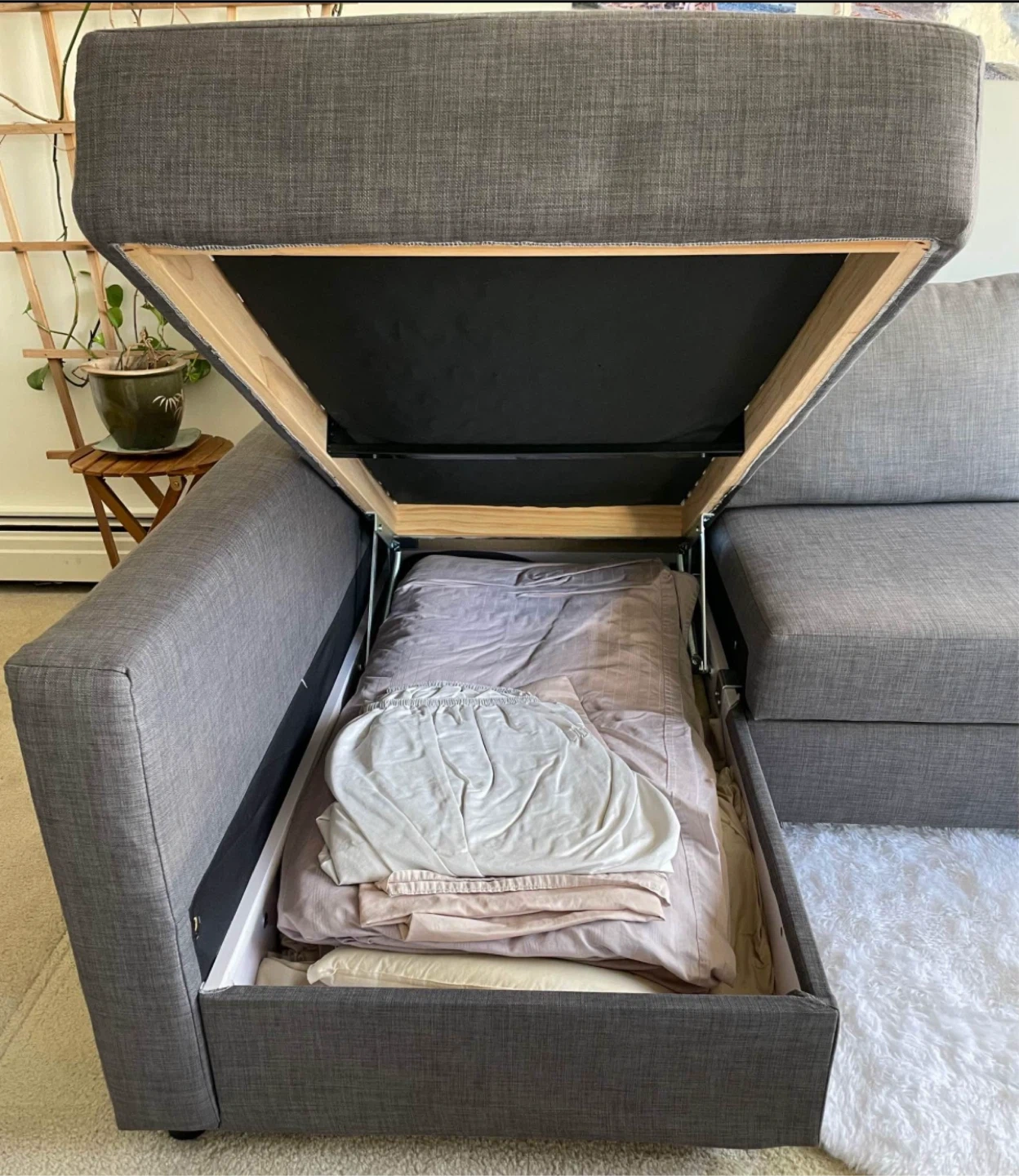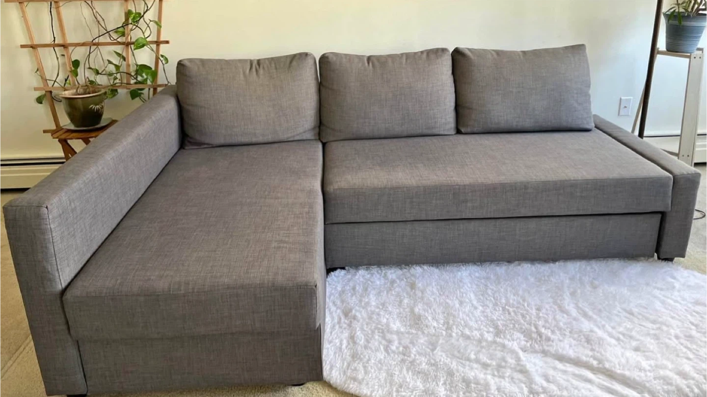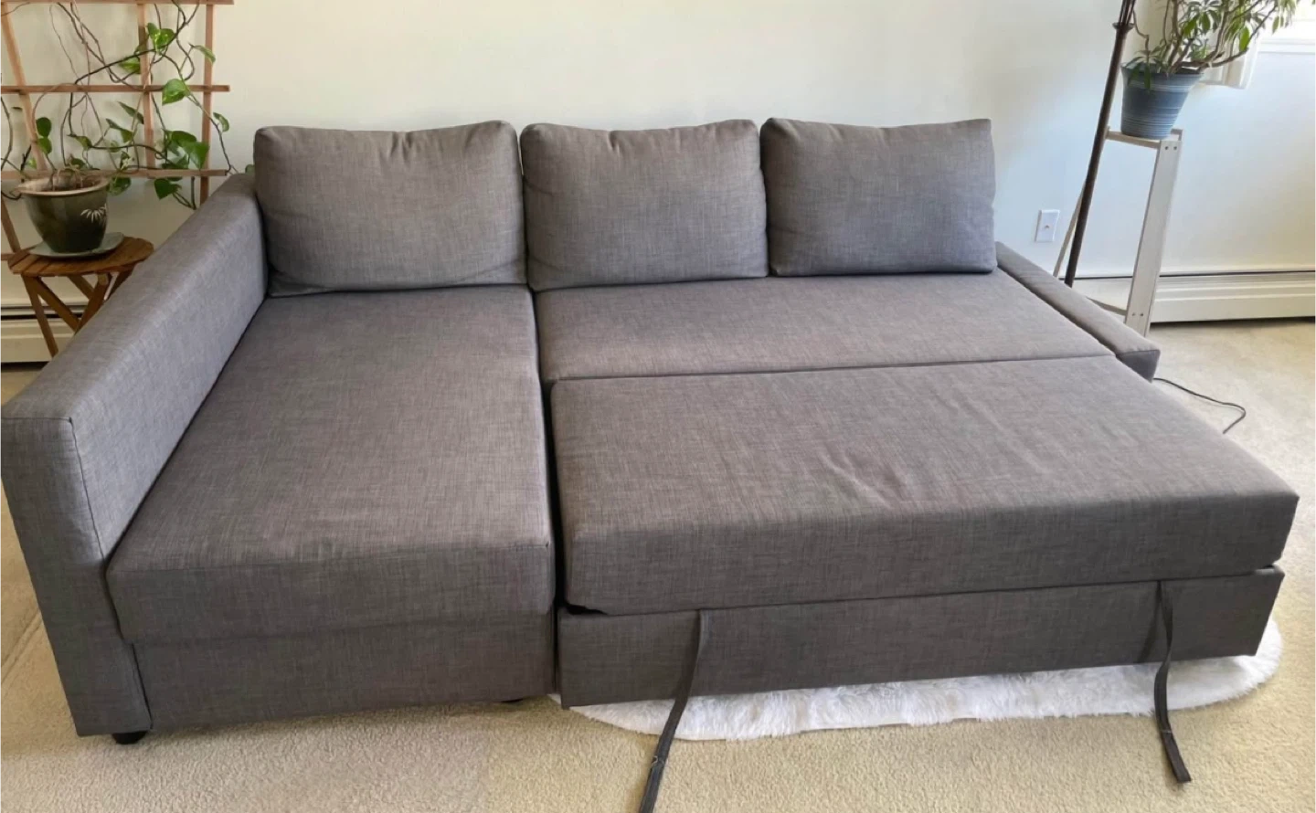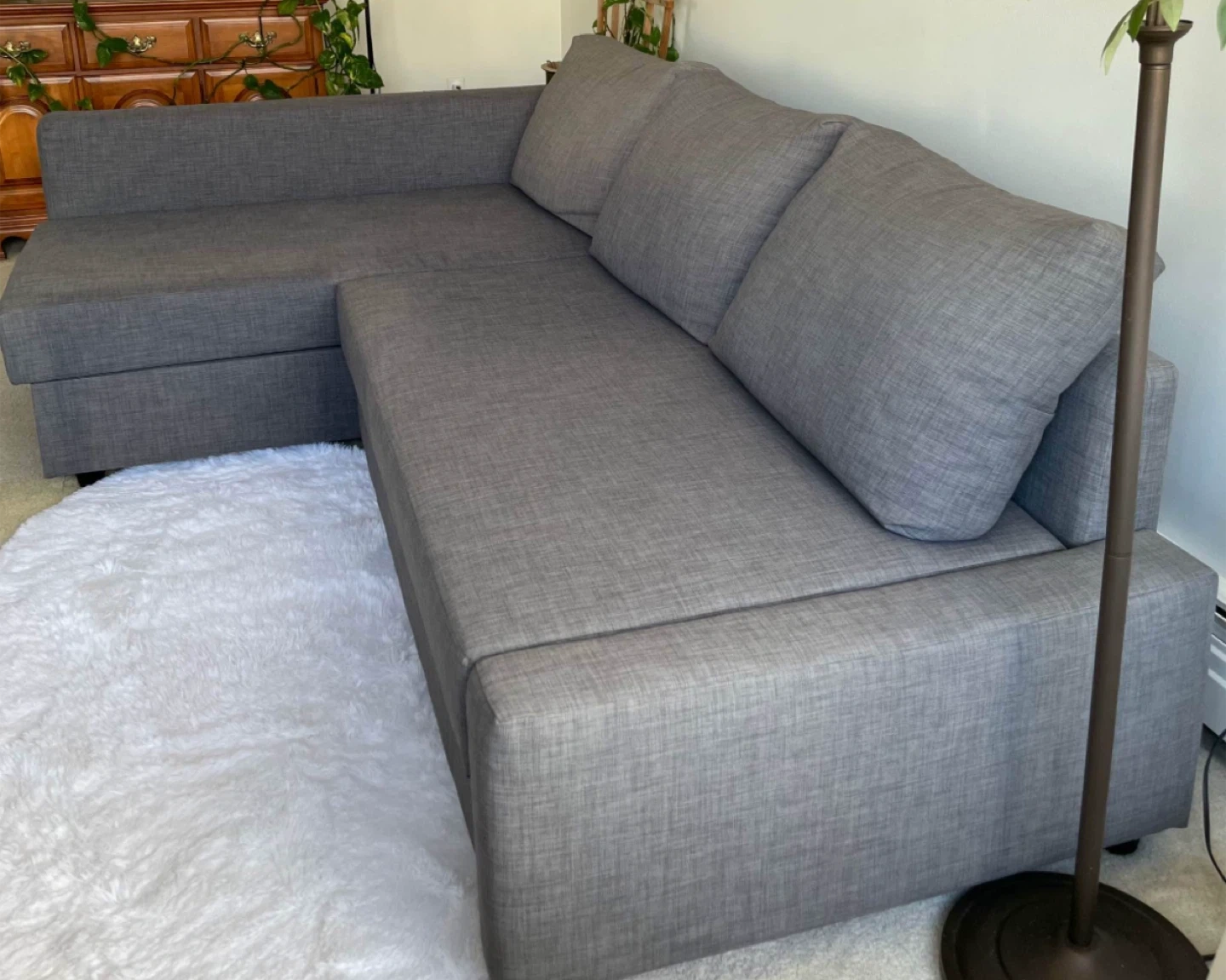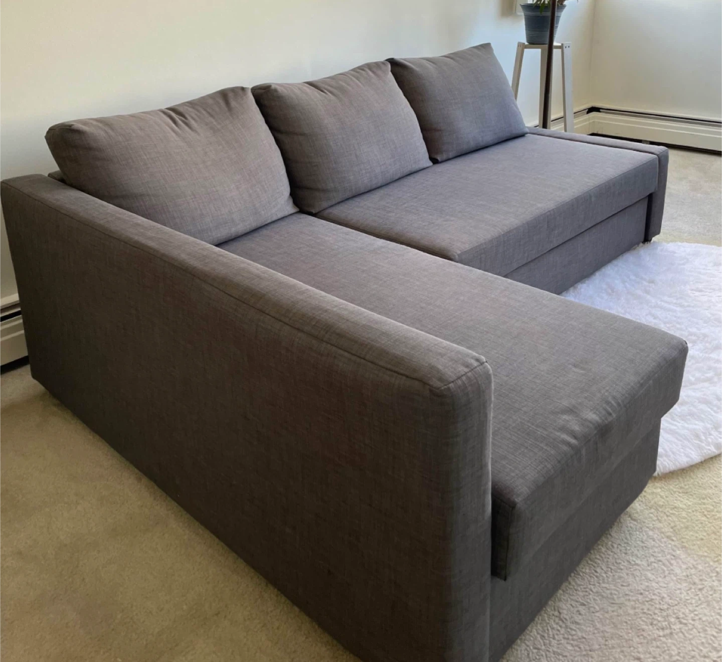 60Selling a grey sectional pet free sofa with a pull-out sleeper! It's in great shape and super comfy. There's also a convenient storage compartment under one of the sections, perfect for blankets or pillows. Would be great for a living room or basement!