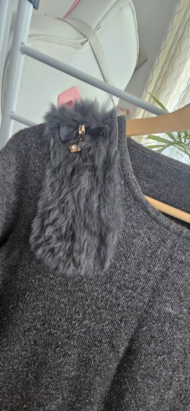 148Selling a cozy grey sweater that features a unique fur embellishment near the neckline. It's in great condition and ready to add a touch of flair to your wardrobe! 🍃🍂Check out my other listing. There may be something else you're also interested.