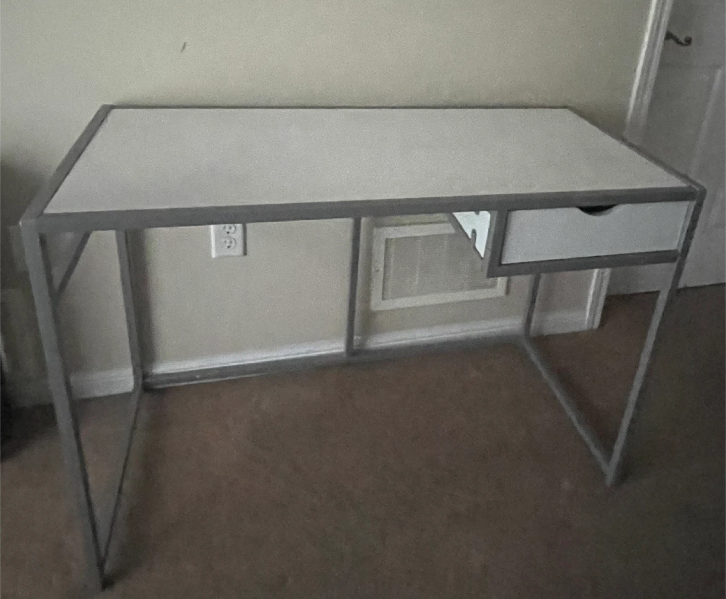 10Selling a simple grey & white desk that's perfect for a home office or study space! It features a clean design with a handy drawer for storage. The desk is in good condition and ready for a new home
