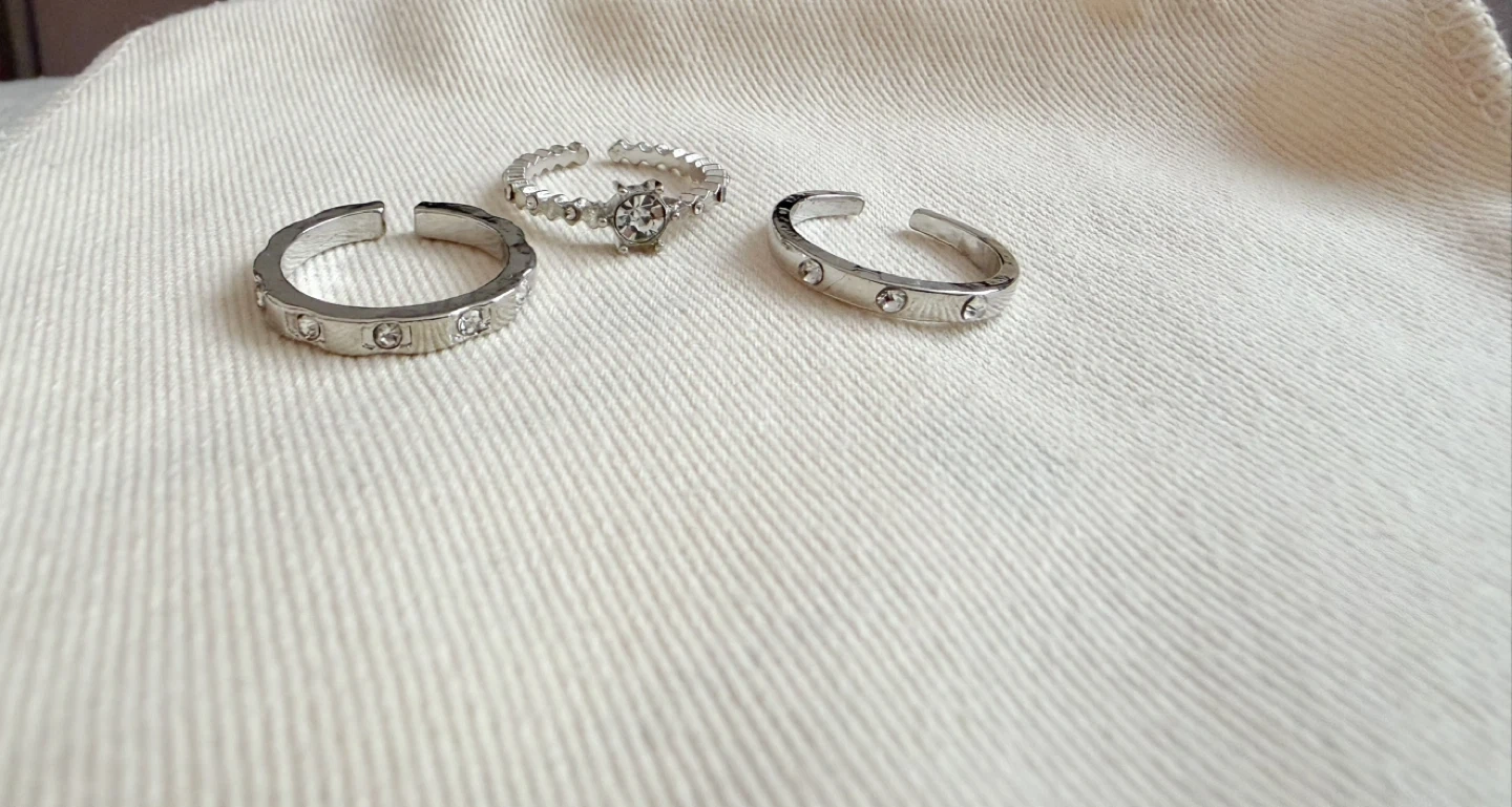 Selling a set of three silver-tone adjustable rings. They're in great condition and ready to accessorize your outfits! Perfect for adding a touch of sparkle to any look