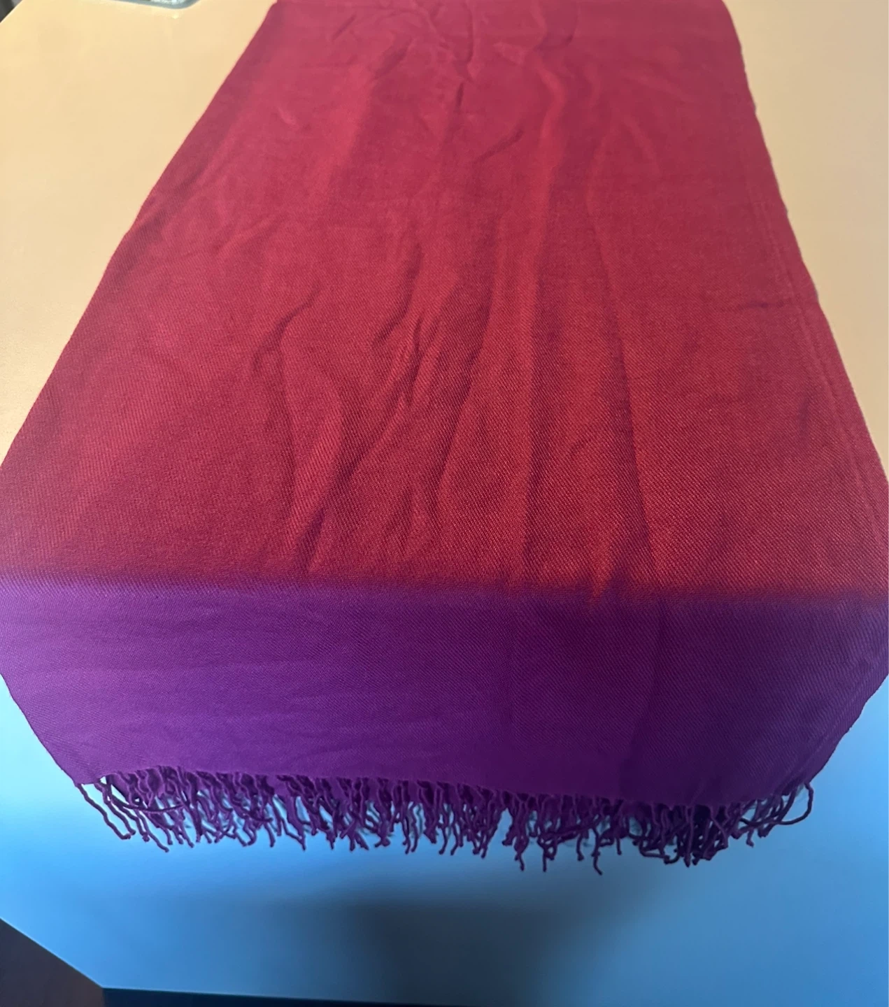 Vibrant Magenta and Red Scarf/Shawl with Fringe