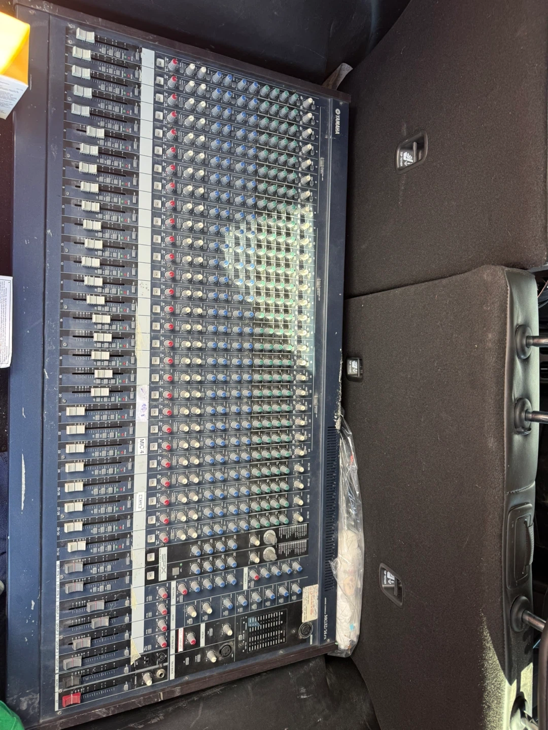 This is a Yamaha MC24/14 FX analog mixer with multiple channels. It's designed for audio mixing and sound reinforcement. This unit is ideal for live sound engineers and studio applications.