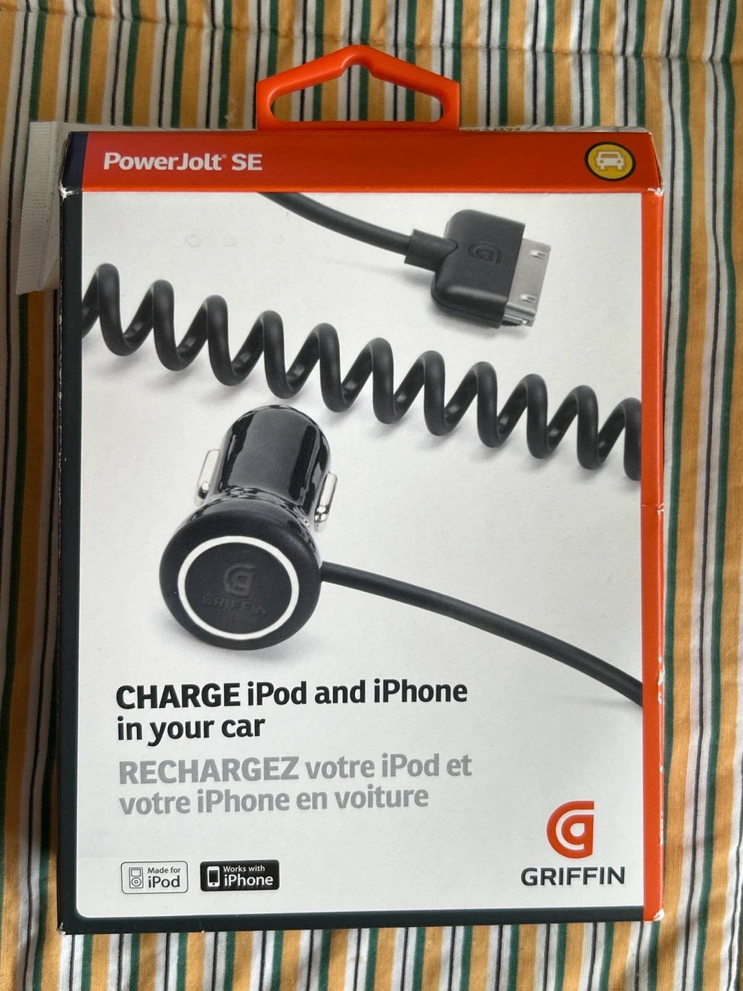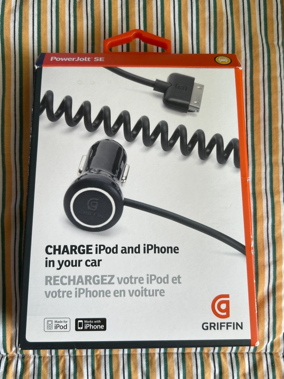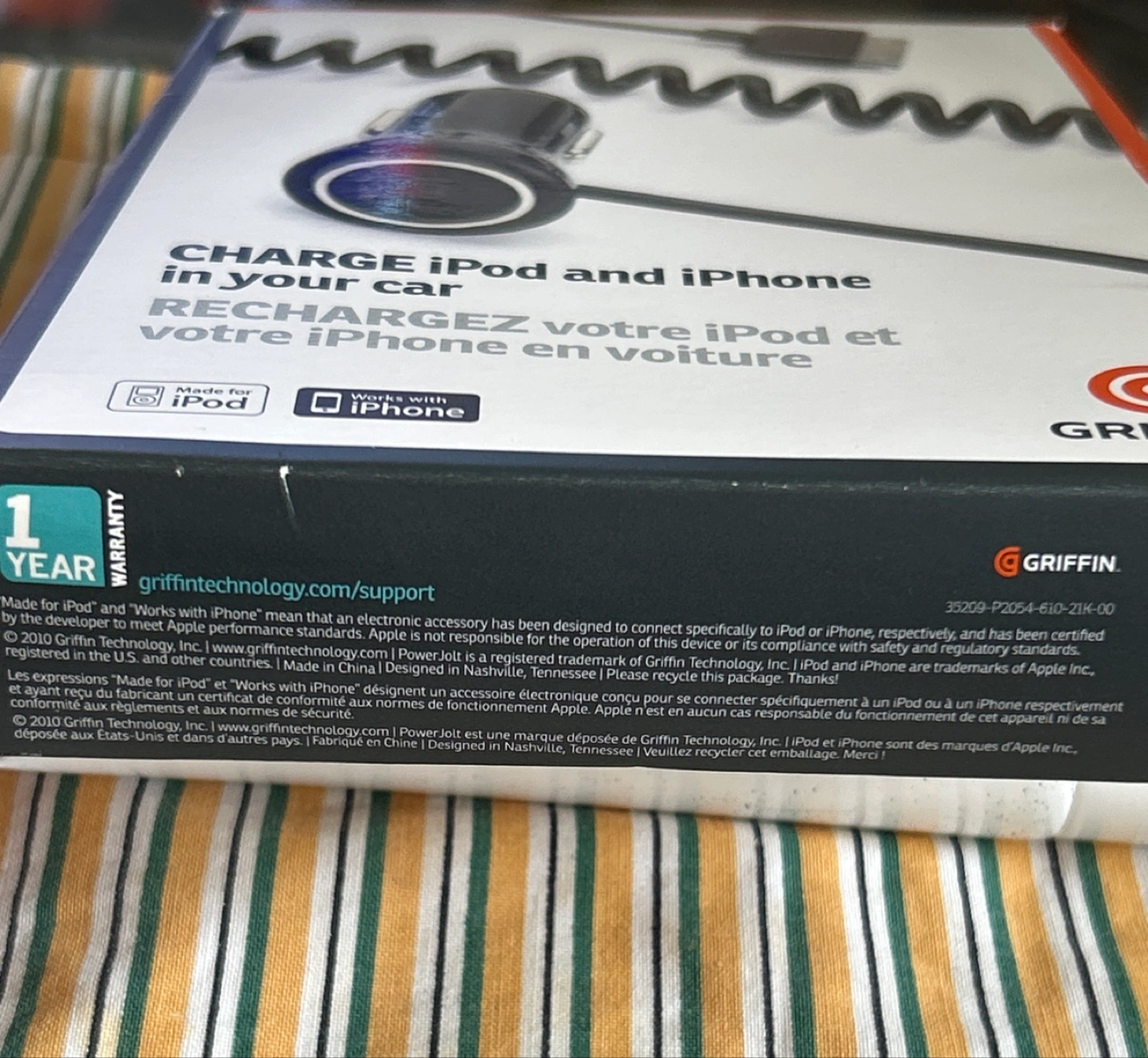 1000+Car charger for iPod and iPhone. Comes in its original packaging. Sealed and never used. Perfect for keeping your devices charged during your travels or home ensuring you're always connected. Smoke/Pet free home. Cash & Pick Up only.