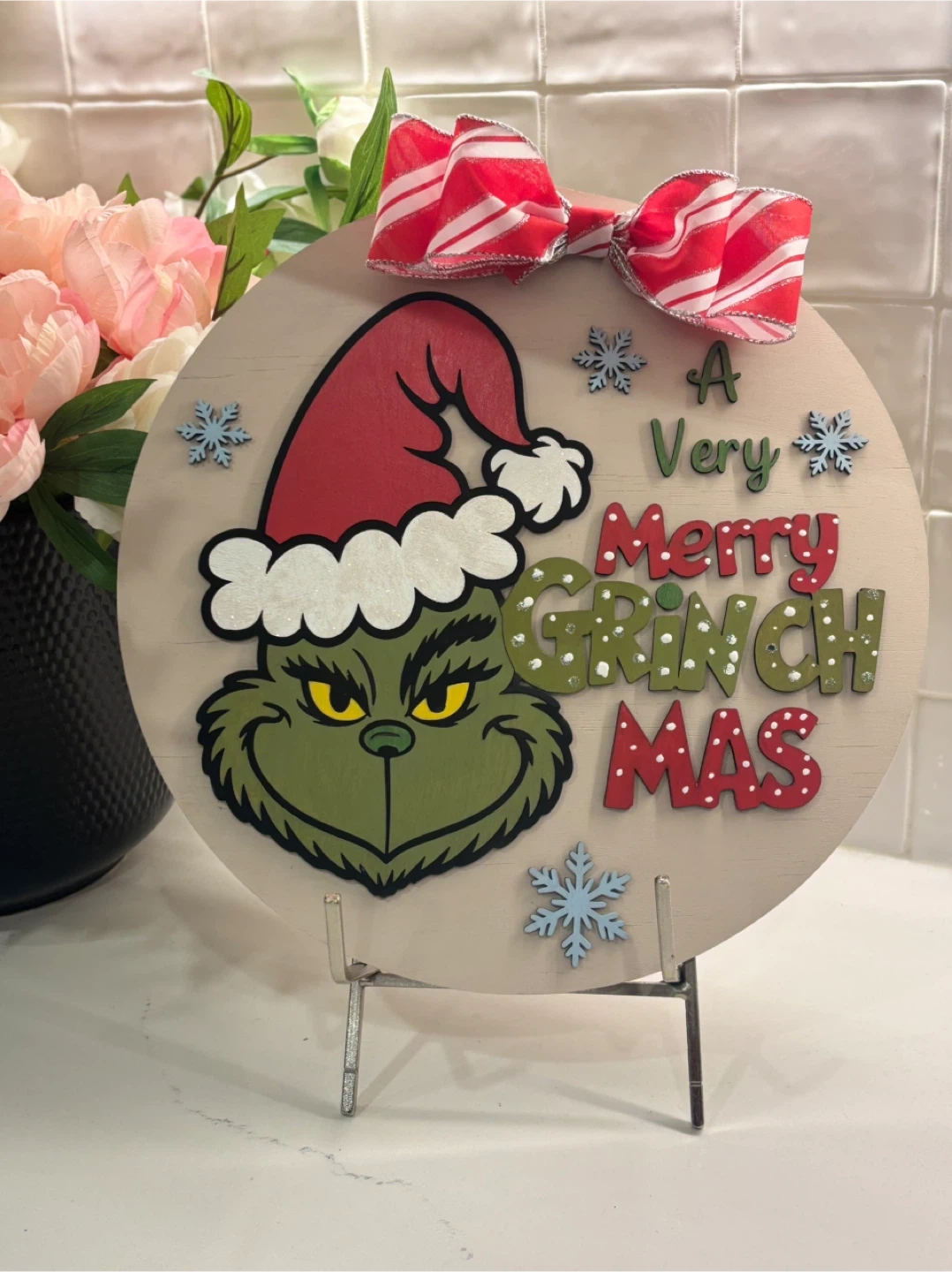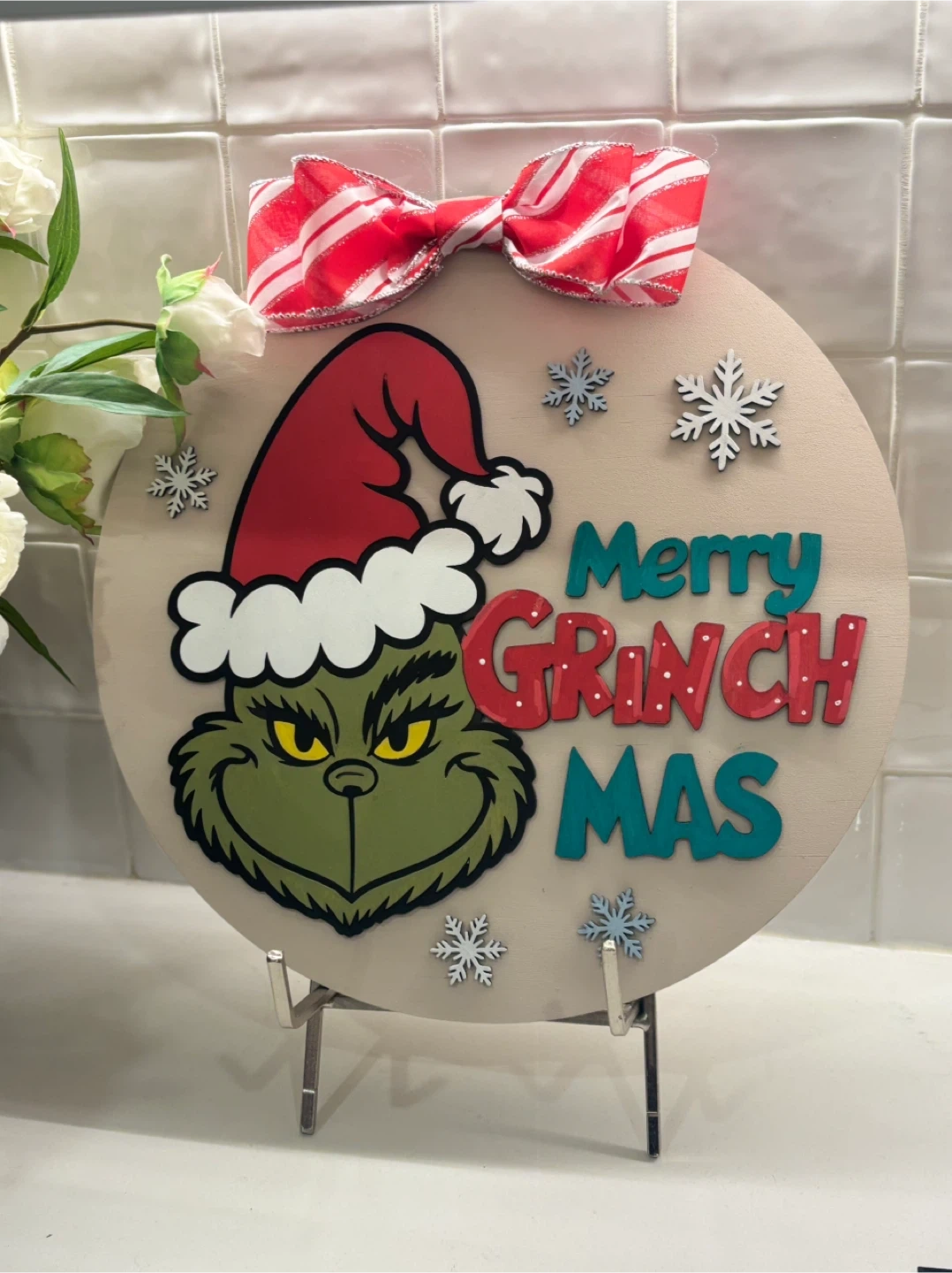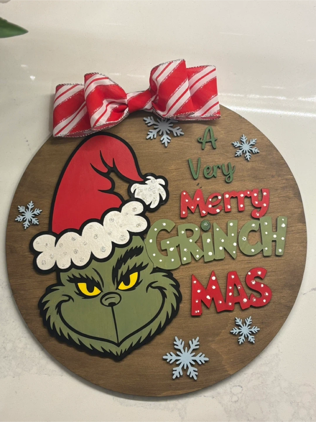 15🎄✨ Handmade Christmas Door Round Hanger ✨🎄 Bring the holiday spirit to your home with these charming Christmas door round hangers! Each piece is handcrafted with layered wood cutouts, vibrant festive colors, and delightful 3D details that make them truly stand out. Choose from fun and festive designs — whether you love the classic “Merry Christmas” look or a playful Grinch-inspired twist, there’s one to match every holiday personality! 🎅 Details: Made from quality wood with hand-painted details 3D layered design for added depth and charm Perfect for front doors, entryways, mantels, or walls Approximately 14 inches in diameter Lightweight and easy to hang Optional bow or snowflake accents for extra holiday sparkle 💚 Available Designs: A Very Merry Grinchmas — Whimsical and fun, featuring the mischievous Grinch and a candy-striped bow! Merry Christmas with Trees — A classic winter look with snow-covered evergreens. Ho Ho Ho Grinch — A cheeky, festive favorite that’s sure to make guests smile! 🎁 Perfect as a gift or to add a touch of joy to your own holiday décor! 🛒 Order yours today and make your door the merriest on the block!