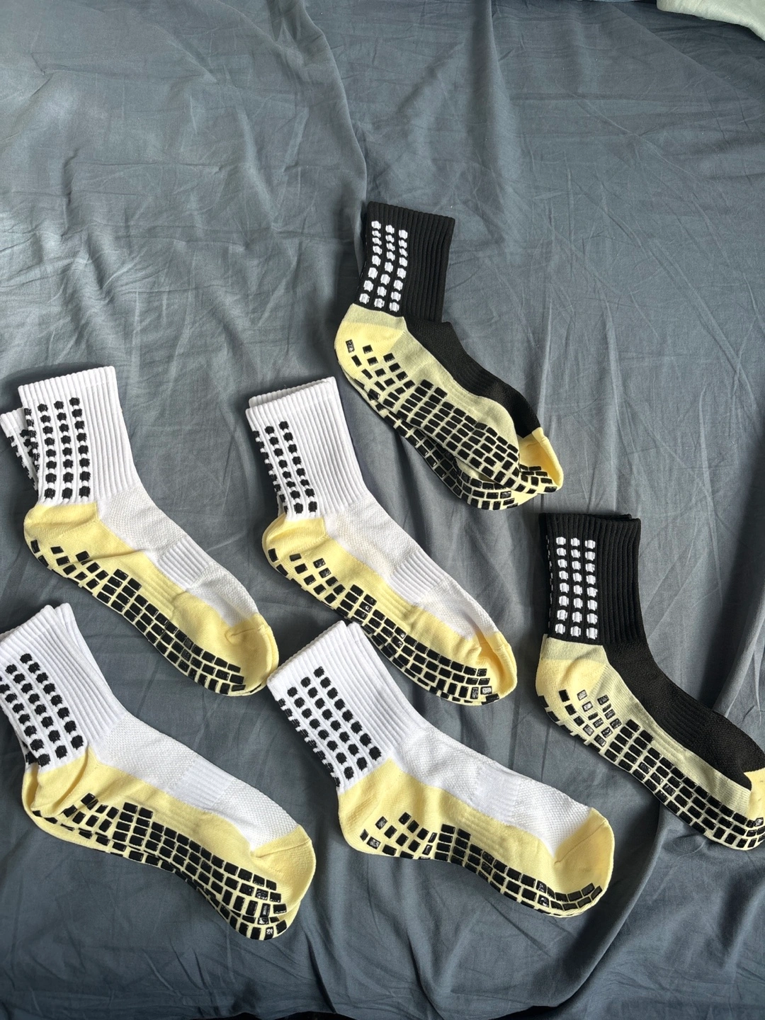 Selling some grip socks! They come in black and white. Perfect for sports or just lounging around the house. They have grips on the bottom to prevent slipping.