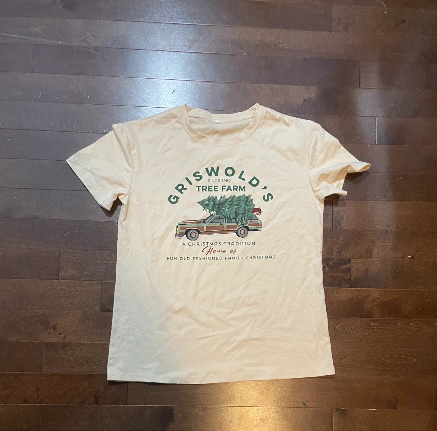 41Selling a Griswold's Tree Farm t-shirt in size medium. The shirt features a fun, old-fashioned family Christmas design. It's in great condition and ready for a new home!