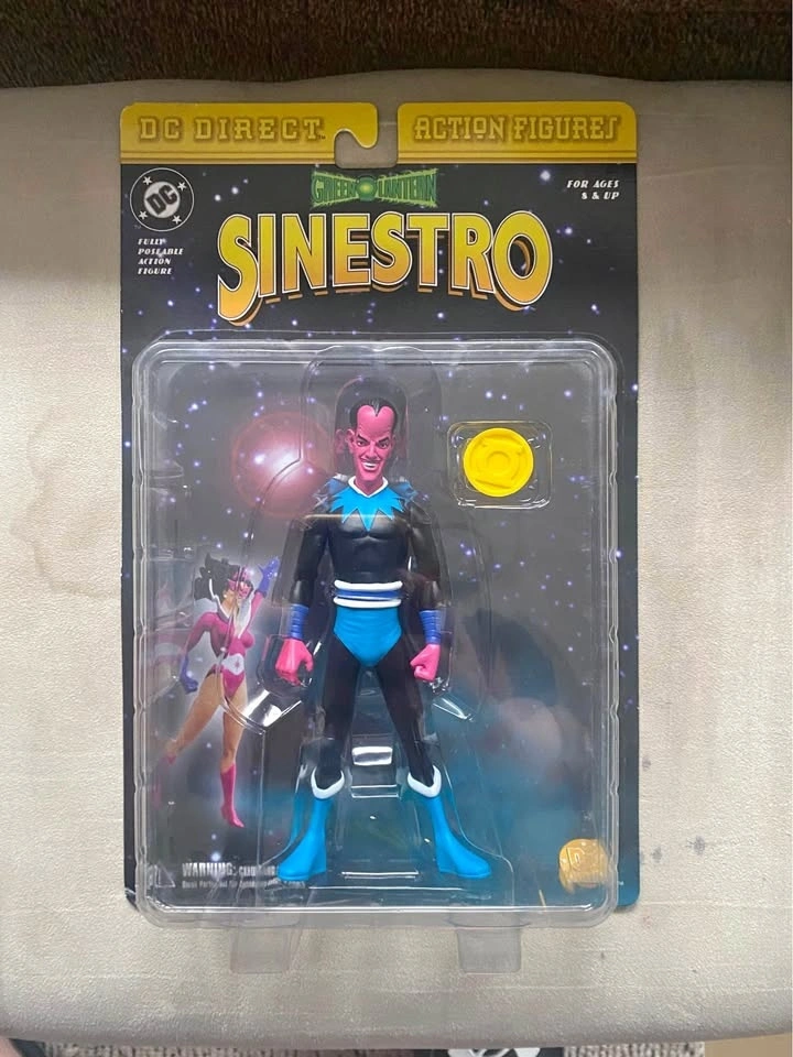DC Direct vintage Green Lantern Sinestro action figure from 2001. It's brand new, but there's a slight crease on the bottom left corner, as shown in the photo. Feel free to message if you have any questions!