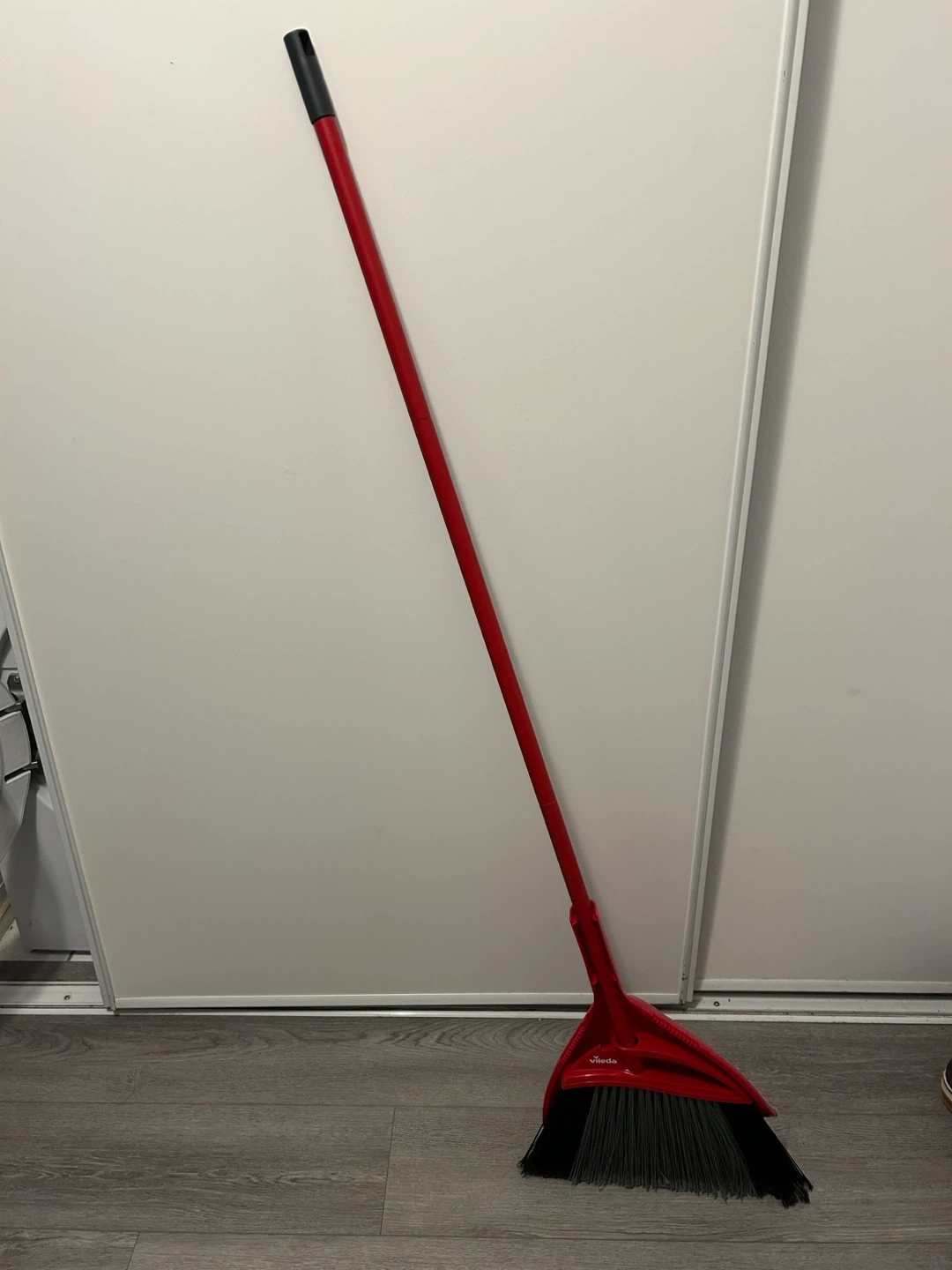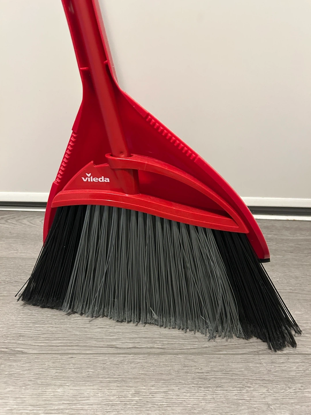 This Vileda Super Angle Pet Pro broom and dustpan set is designed to tackle pet hair. It features an angled broom head for better reach and a step-on dustpan for easy use. The bristles are effective for picking up fine debris and hair.