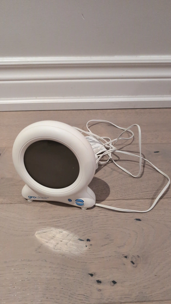 10I'm selling a Gro-Clock sleep trainer. It's in great condition and ready to help your little one learn about bedtime and wake-up time. It's a simple and effective way to teach children when it's time to get up in the morning