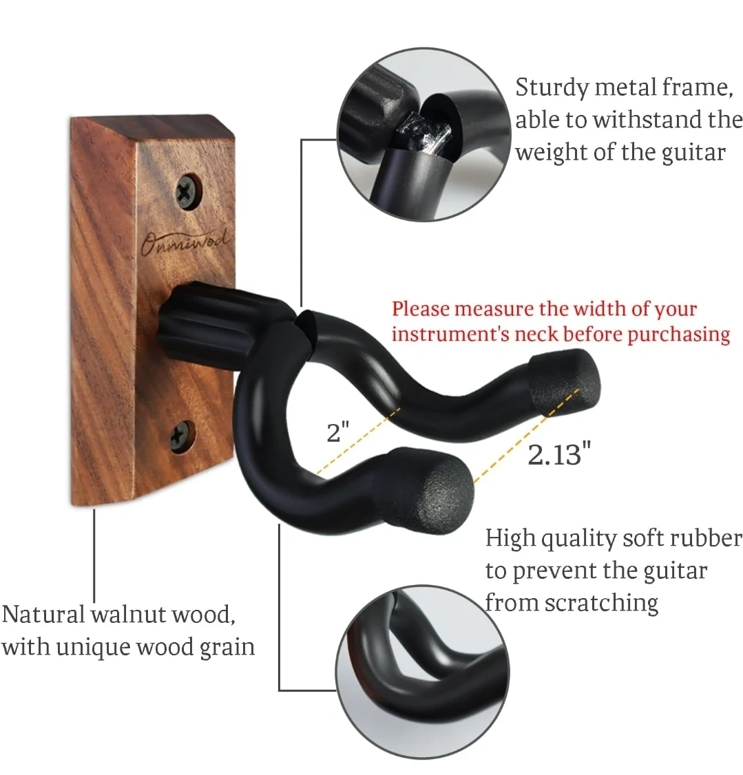 Onmiwod Black Walnut Wood Guitar Wall Mounts (2 Pack)