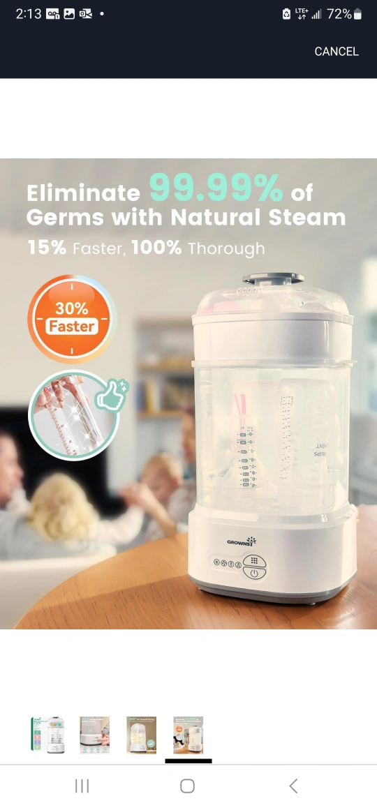30Keep your little one's bottles clean with this GROWNSY steam sterilizer and dryer! It eliminates 99.99% of germs with natural steam, and it's 15% faster and 100% thorough. It also dries the bottles after sterilizing, saving you time and effort