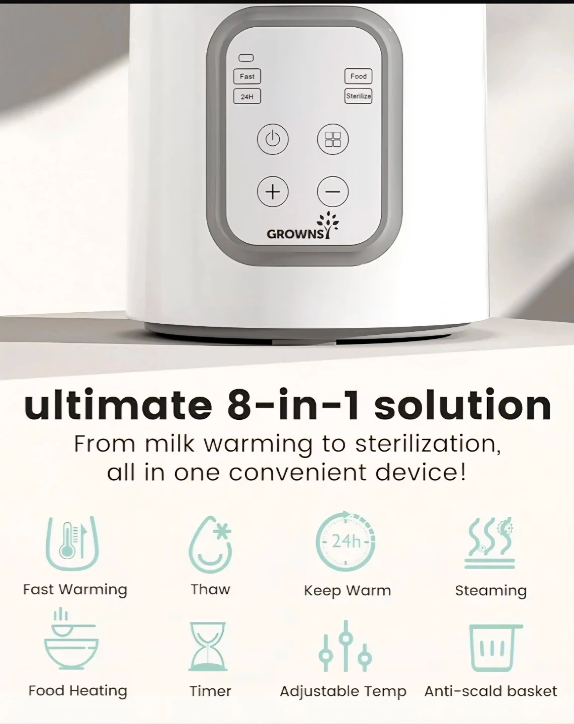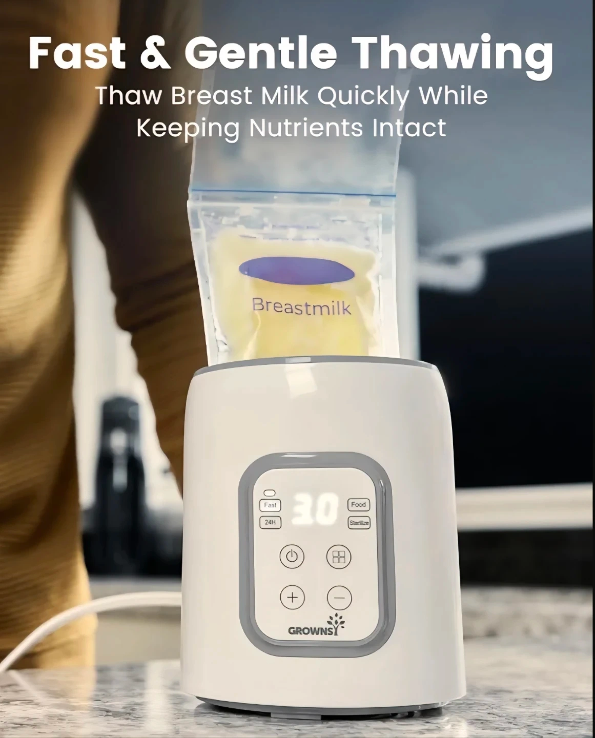 131Bottle Warmer, GROWNSY 8-in-1 Fast Baby bottle Warmer with Timer LCD Display Accurate Temperature Control for Breastmilk or Formula. This warmer features fast warming, 24-hour keep warm function, and a sterilize option. It's super convenient for busy parents Open Box
