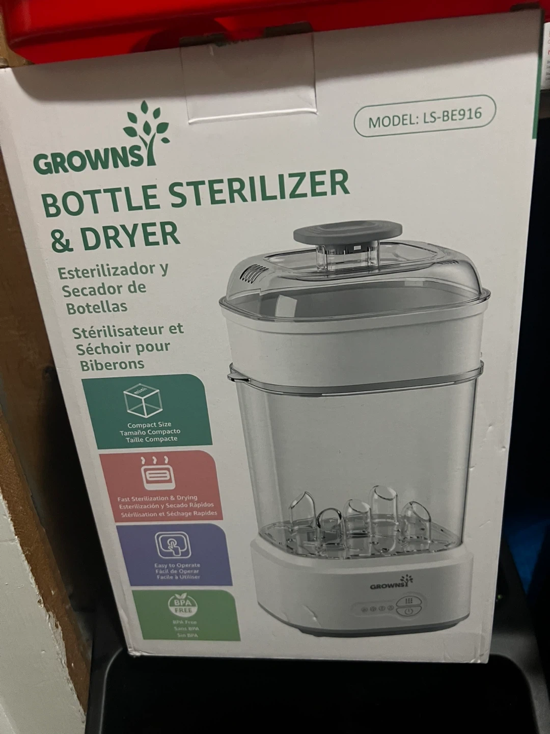 37Selling a Grownsy bottle sterilizer and dryer. It's compact and easy to operate. It also features fast sterilization and drying. BPA free. Box opened but never used