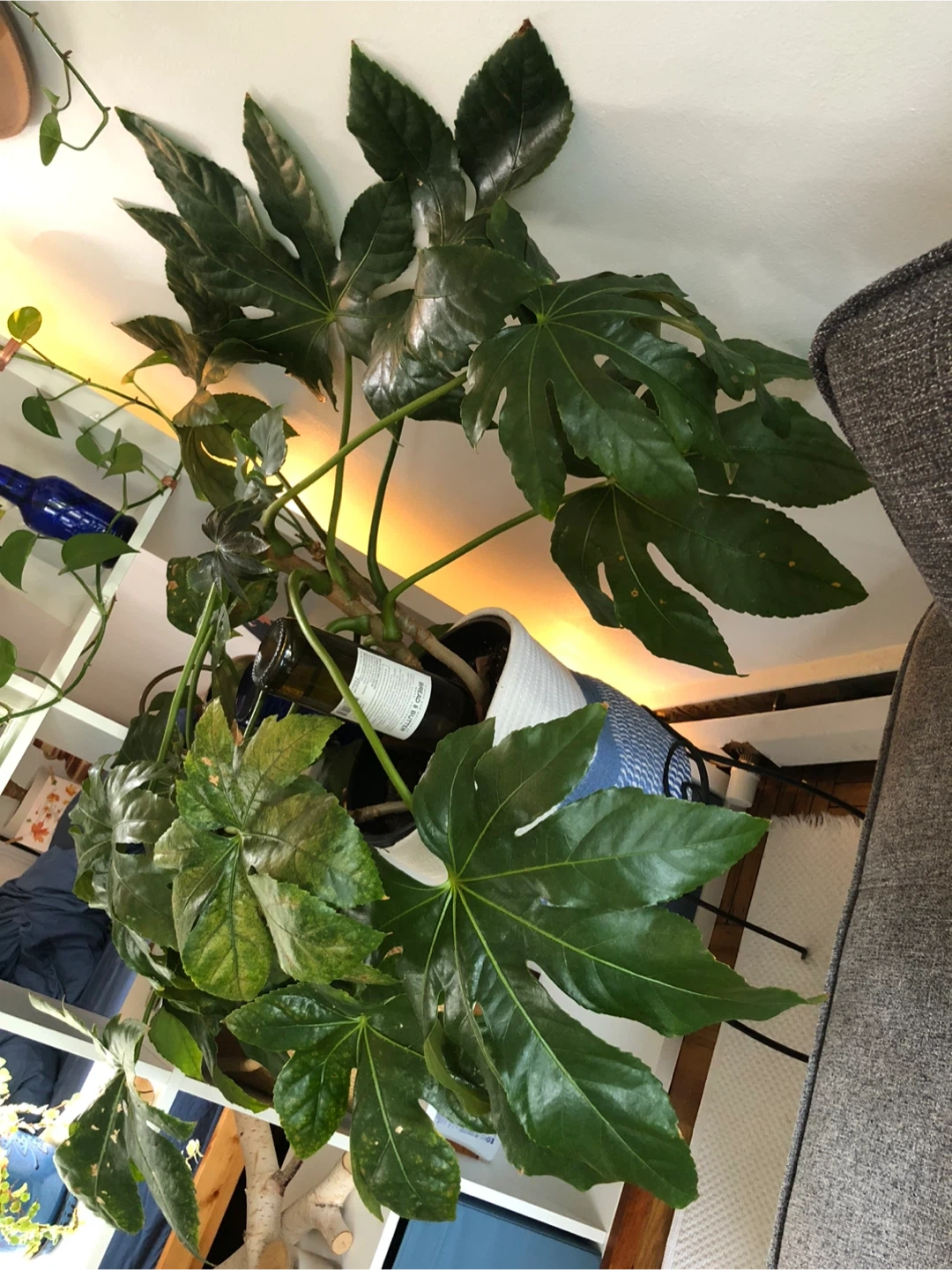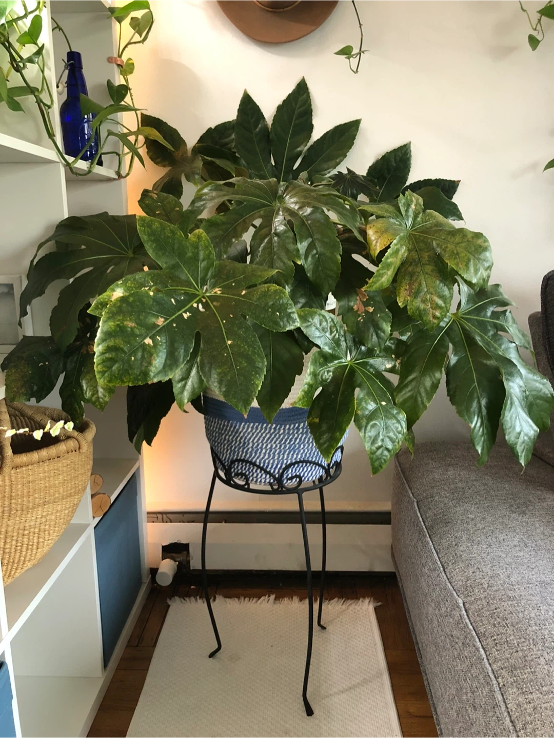 Selling a healthy Fatsia Japonica indoor plant! It's a beautiful addition to any home, bringing a touch of greenery and life to your space. It has lush, vibrant leaves and is easy to care for, thriving in indoor conditions. It comes in a stylish pot and stand, ready to brighten up your home!